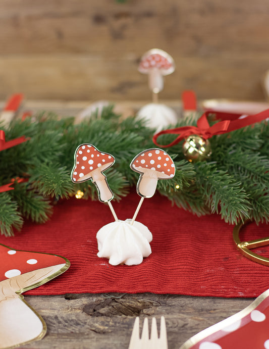 16 červeno-bielych papierových obrúskov v tvare húb s rozmermi 29 x 32 cm