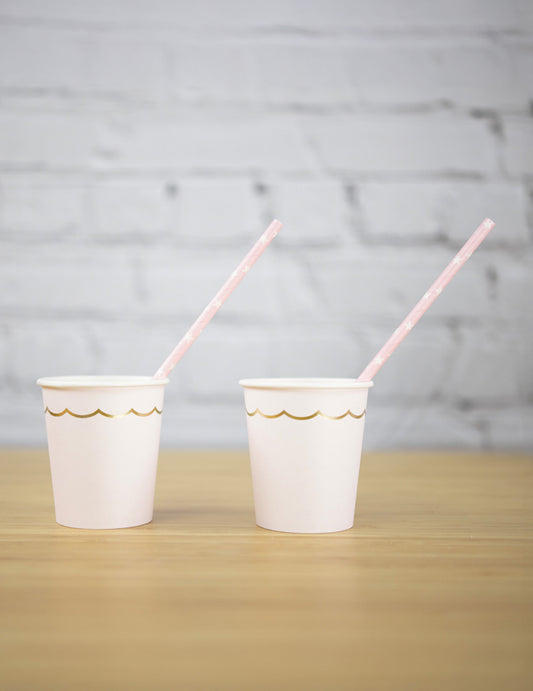 Vypredané8 vlnčekových kartónových pohárov v pastelovej ružovej a zlatej farbe, 200 ml