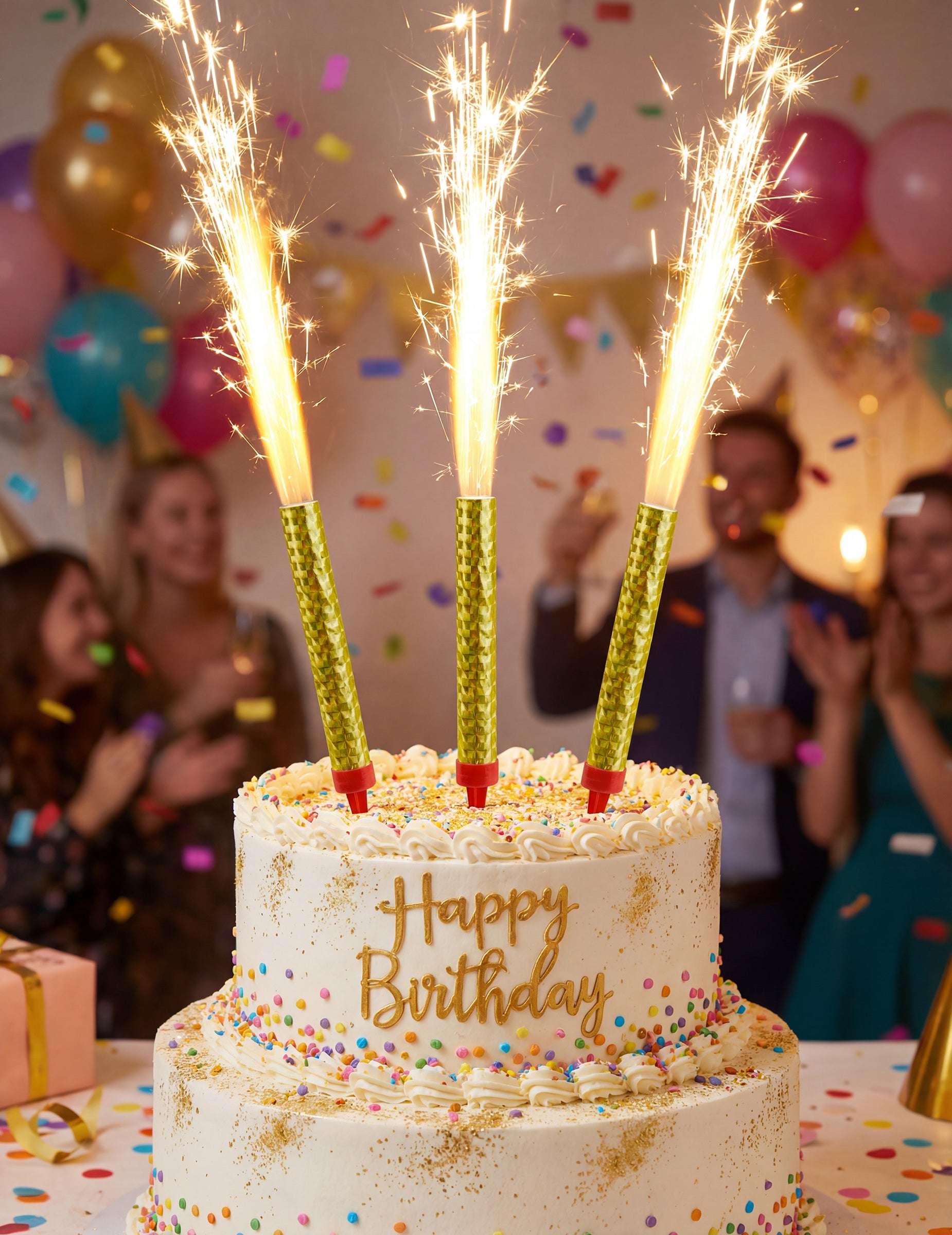 Veľa troch malých fontán večierkov pre interiérové umelecké diela. Majú zlatú farbu a dodávajú sa náhodne. Fontány sú vysoké 9,5 cm a pracujú zapnutím konca. Táto šarža 3 fontány je skutočnou „snovou kyticou“. Na chvíľu osvetľujú váš koláč najkrajším spôsobom počas narodenín.