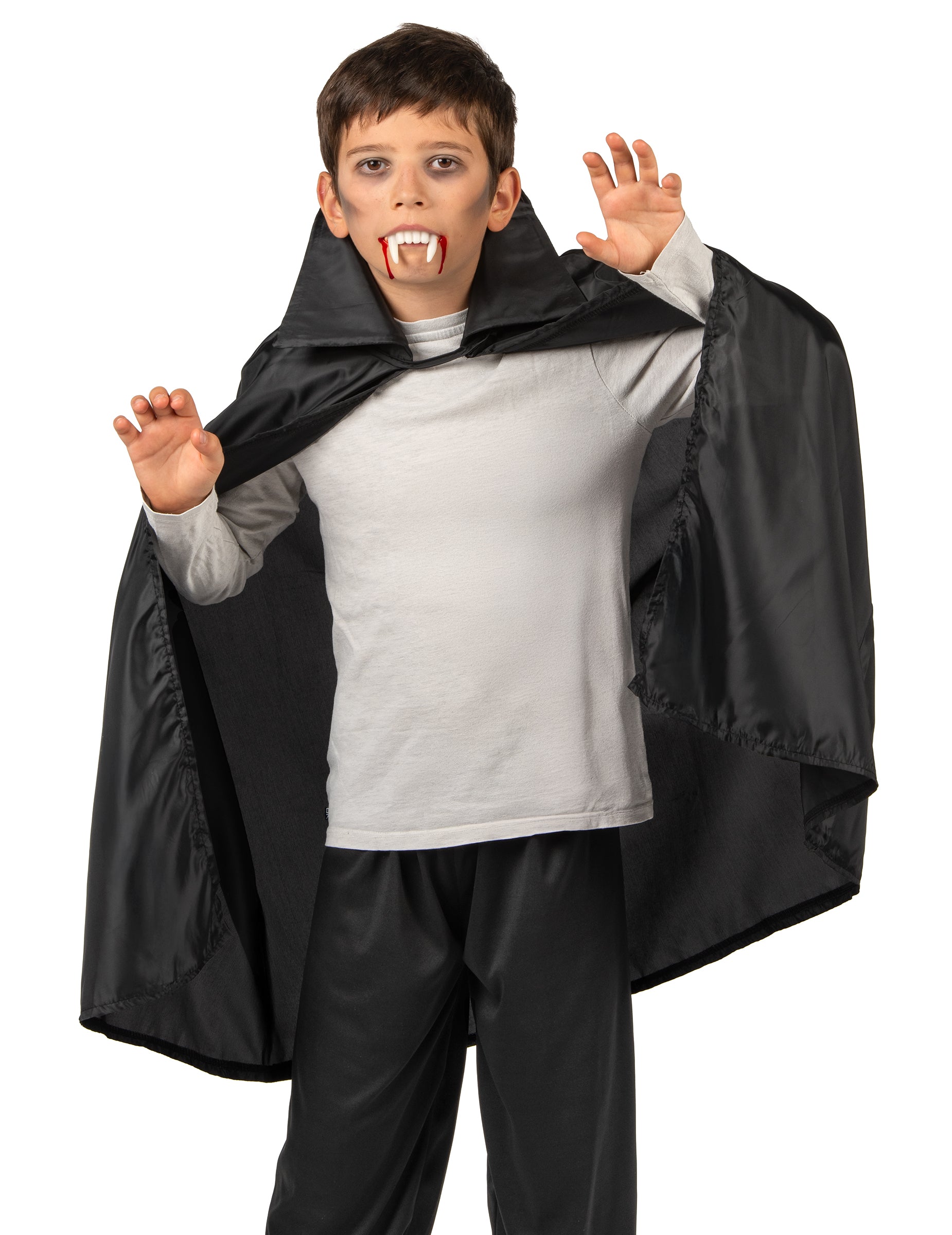 Tento dlhý čierny upírsky mys je určený pre deti. Má veľkú prihrávku a pripevňuje sa pred 2 reťazcami, aby sa dal uzlávať (iba mys je zahrnuté). Toto príslušenstvo bude ideálne na dokončenie kostýmu upíra počas vášho večera Halloween.