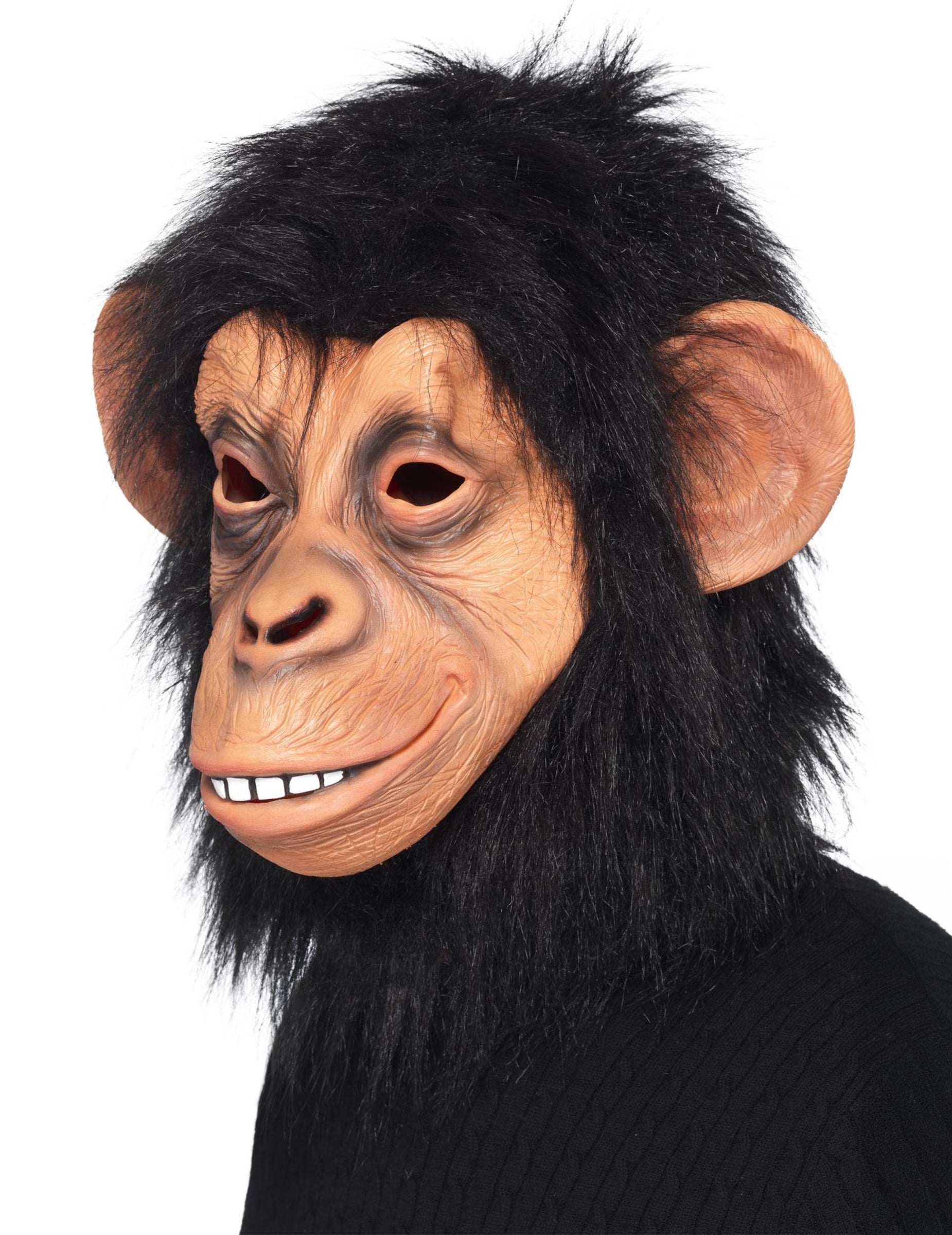 Táto maska ​​pre dospelých opíc úplne pokrýva tvár. Táto maska ​​je umiestnená ako kapucňa. Tvár a uši sú plastové, vlastnosti tváre sú výrazné a presné. Zvyšok masky je v syntetickom materiáli. Bude to ideálne na dokončenie kostýmu a na maskovanie od hlavy až k päte.