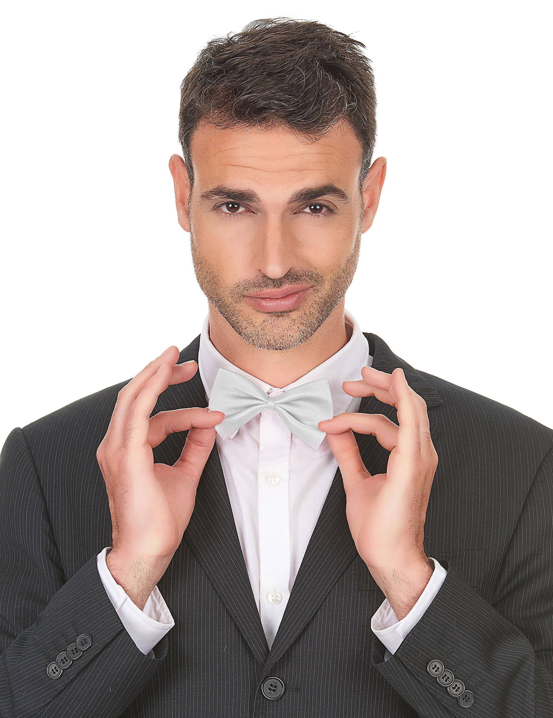 Tento biely motýľový uzol sa nosí pomocou elastického. Je široký približne 12 cm. Dokončite vaše maskovanie dokonale počas vašich kostýmovaných alebo témy 20. scenár.