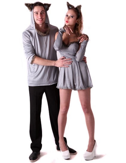 Tento kostým pre pár mačiek pre dospelých obsahuje sivú mikinu s kapucňou s kožušinovým golierom a integrovanými mačacími ušami pre muža.