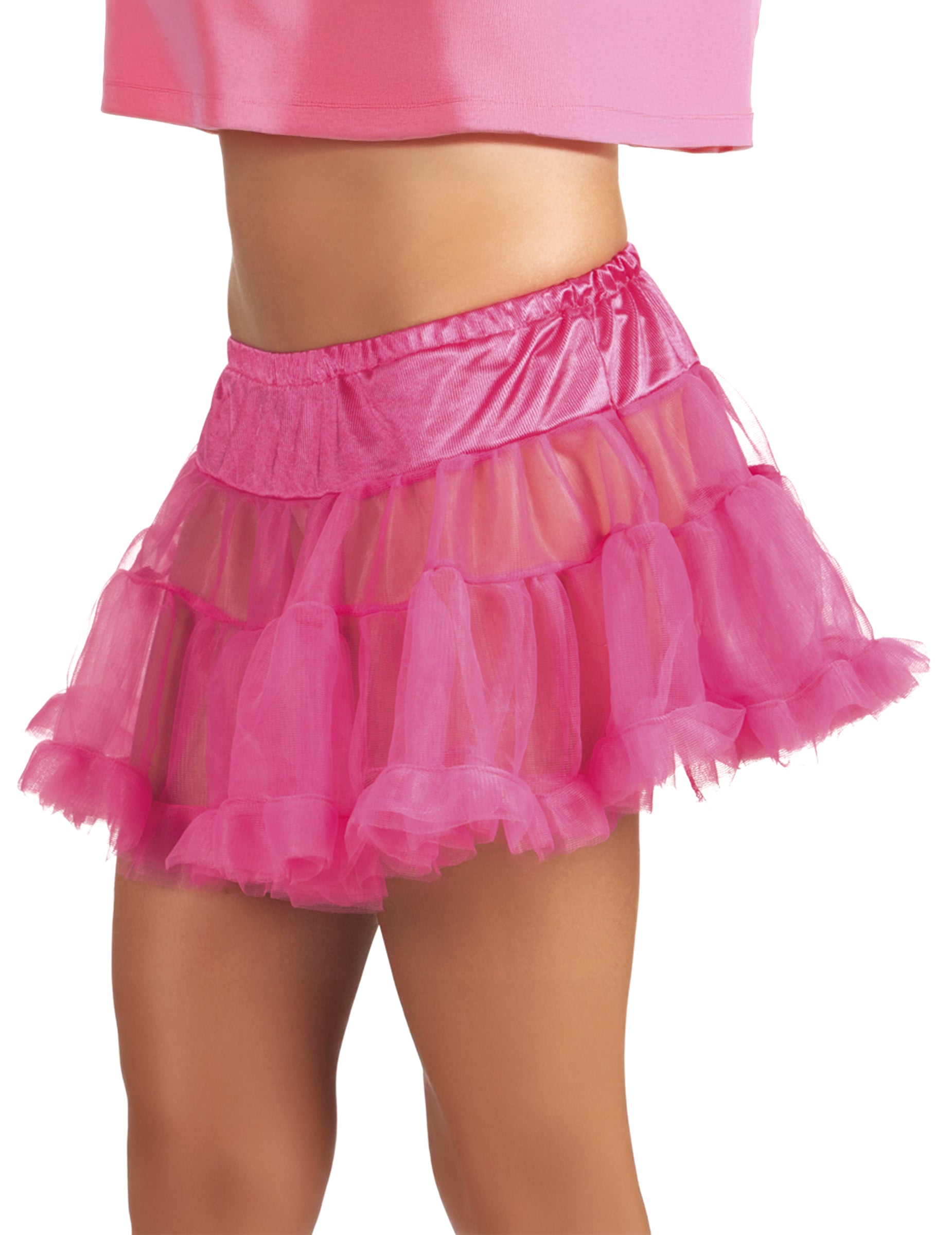 Tento spodničkový tylový a saténový podväzok je ružový. Spodnička má elastický pás v oblasti pása a šnúrku (predáva sa bez sieťovaných pančúch). Bude ideálny na doplnenie a dodanie objemu vášmu kostýmu počas vašich maškarných večierkov.