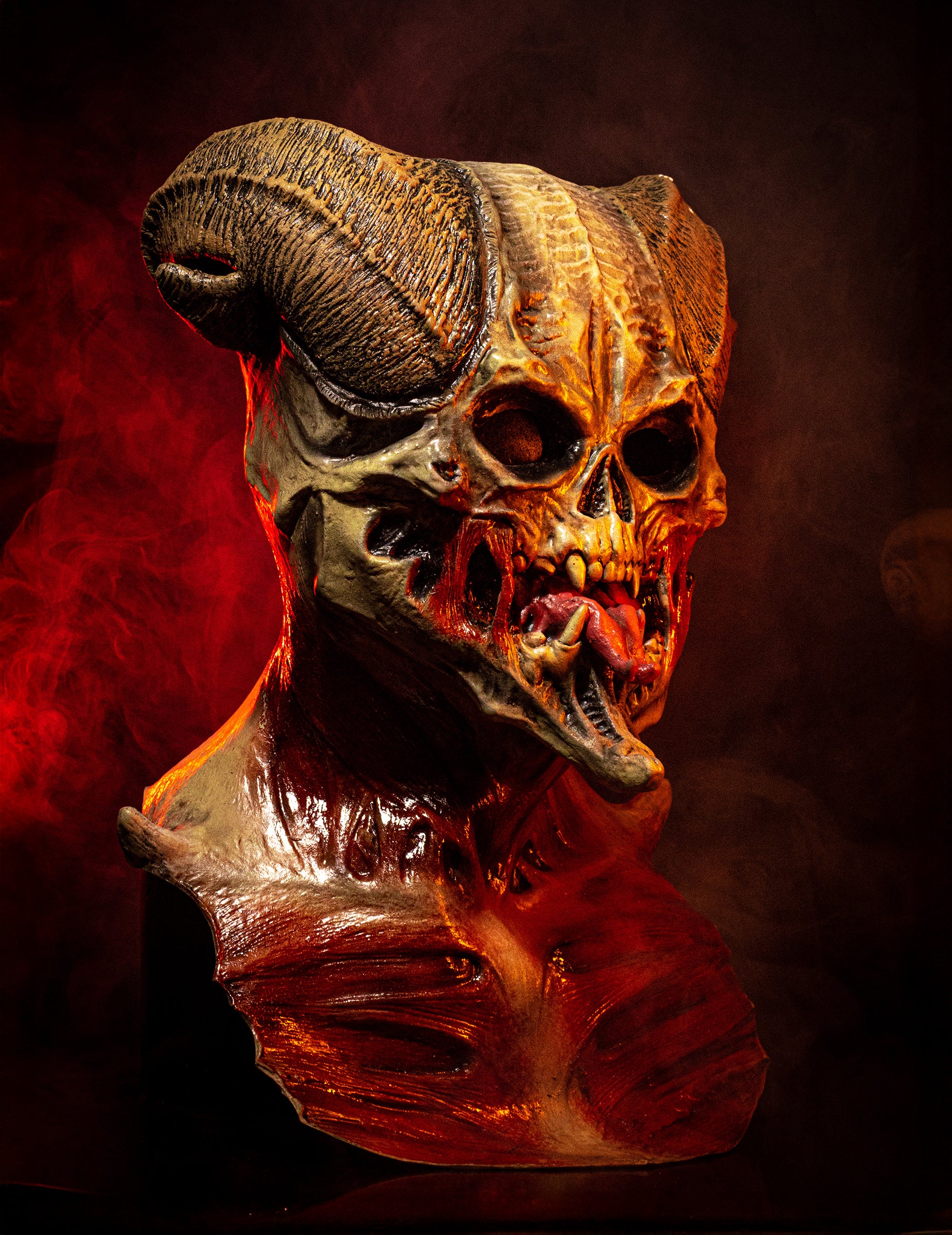Táto latexová plná maska predstavuje lebku diabla s krvavým kostrovým účinkom na hruď. Toto ručne maľované príslušenstvo je ideálne na dokončenie vášho maskovania počas vášho večera Halloween.