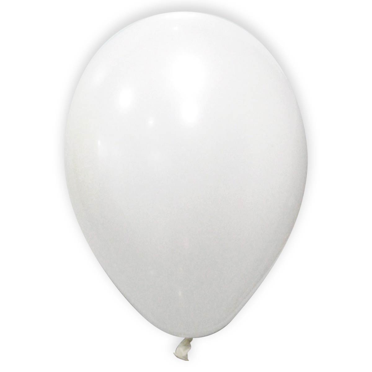 Sada 12 bielych kovových balónov s priemerom 28 cm. Tieto balóny sú vyrobené z prírodnej gumy a úplne biologicky odbúrateľné.