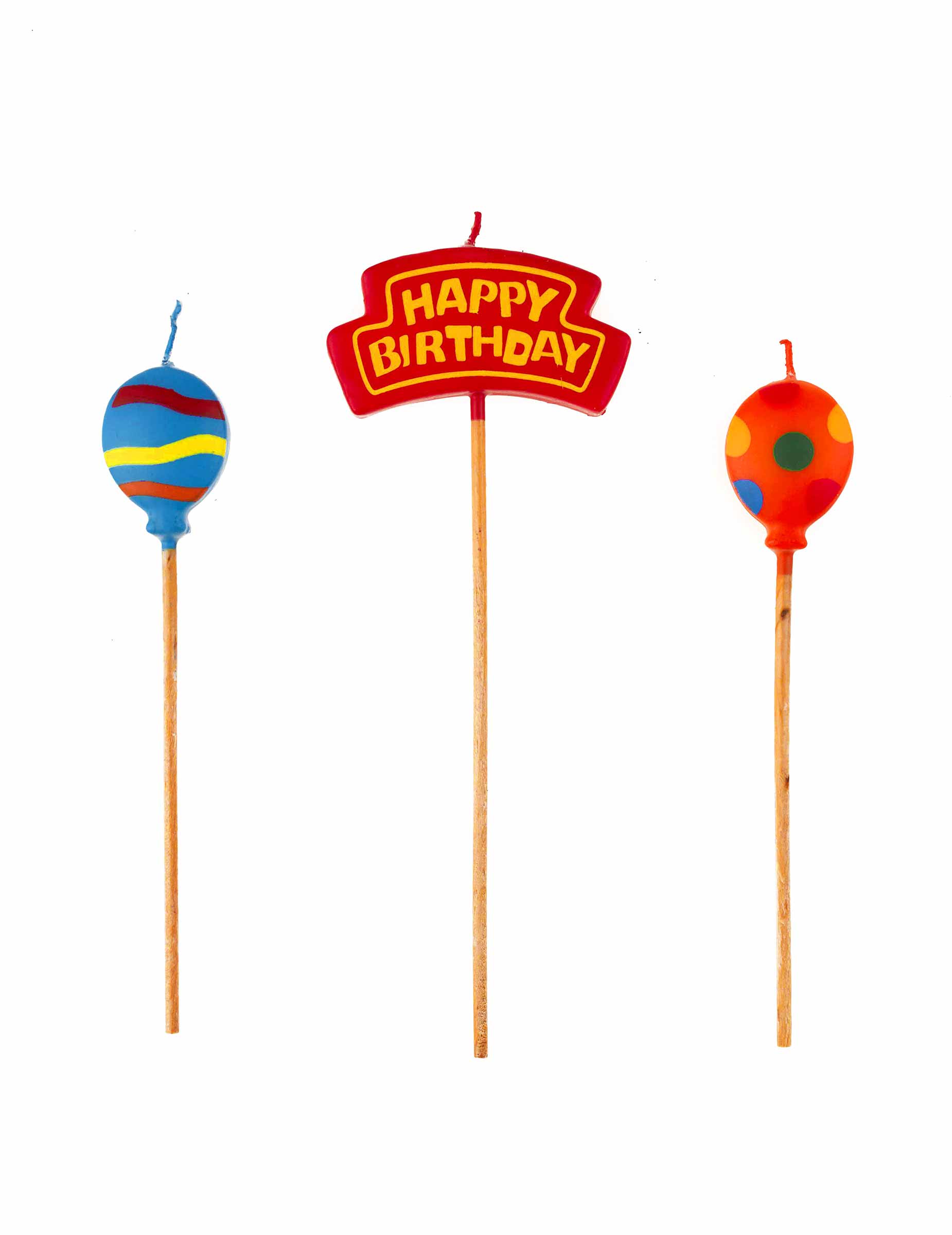 Táto časť obsahuje 3 sviečky na tému narodenín. Meria 25 cm. Existujú dva druhy sviečok: 2 sviečky v balónoch a 1 sviečka s písaním „Happy Birthday“. Tieto sviečky budú perfektné na vylepšenie vášho koláča, a tak majú farebné narodeniny! Unikátna branding Party