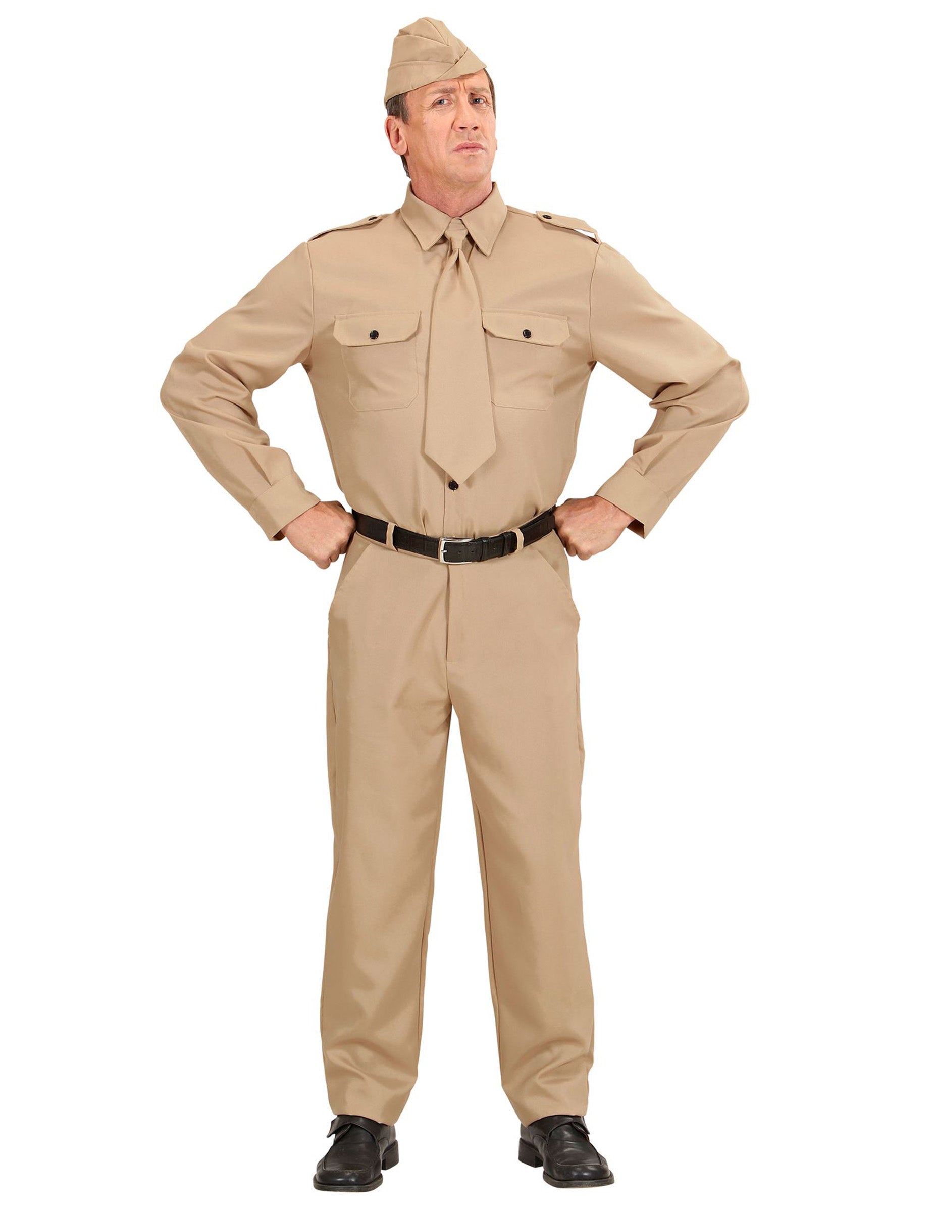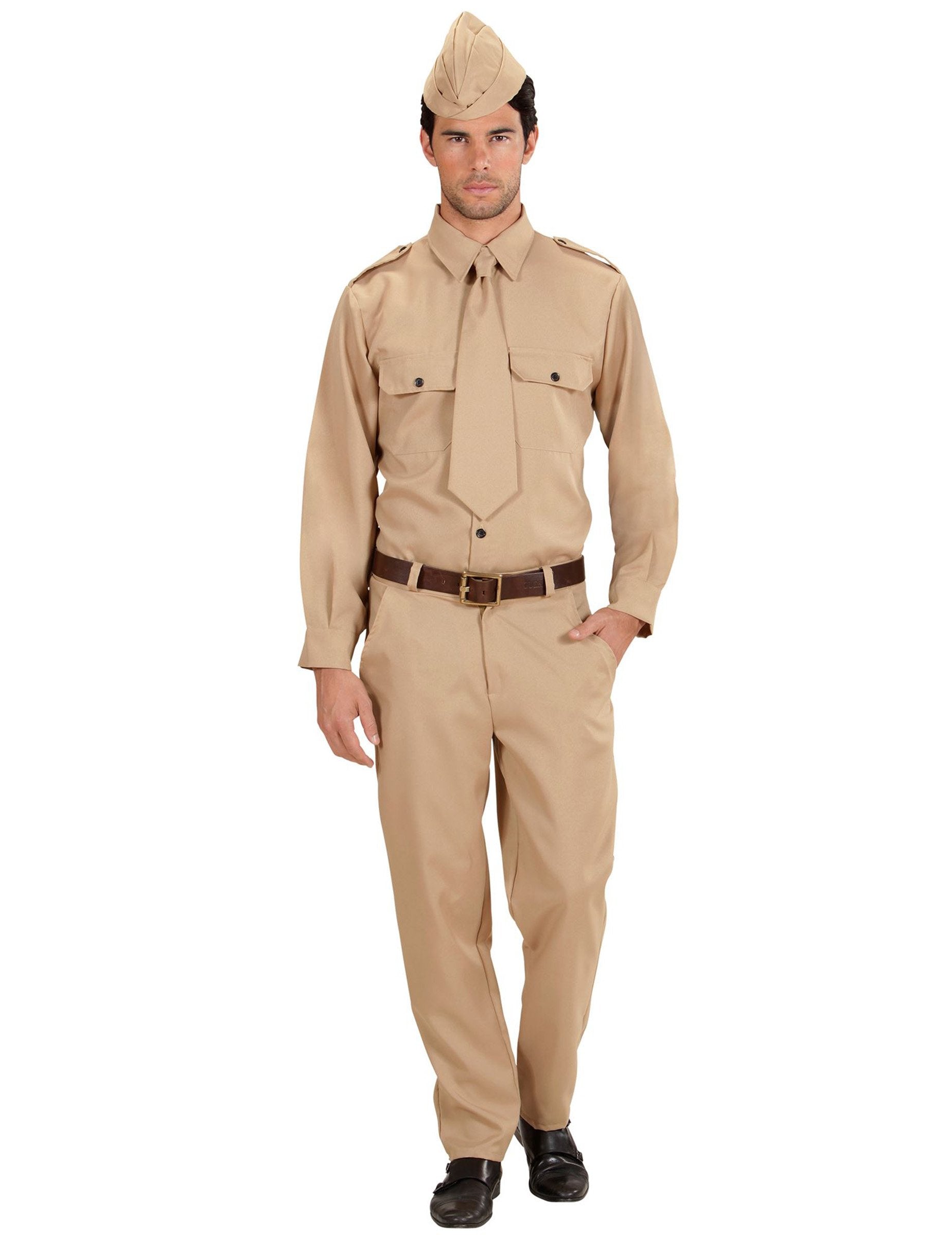 Kostým tohto vojaka v druhej svetovej vojne pozostáva z nohavíc, košele, kravaty a klobúka (opasok a topánky nie sú súčasťou). Elastické hnedé nohavice na zadnej strane pásu majú na prednej strane zips a gombík. Zodpovedajúce tričko sa zavrie na prednej strane pomocou čiernych gombíkov. Kravata s elastickým a klobúkom príde na doplnok oblečenia. Táto sada bude perfektná počas maskovaného alebo tematického večera. Autorské práva Widmann Srl. Autorské práva Widmann SRL