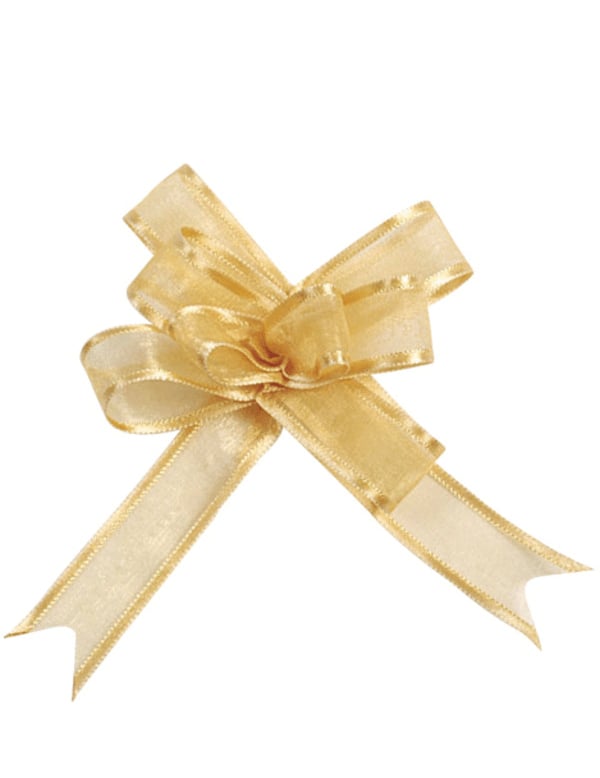 Táto šarža 5 mini zlatých uzlov je v Organi. Stuha, ktorá ich skladá, meria približne 16 mm. Tieto zlaté uzly budú ideálne na zdobenie vašich vianočných darčekov.