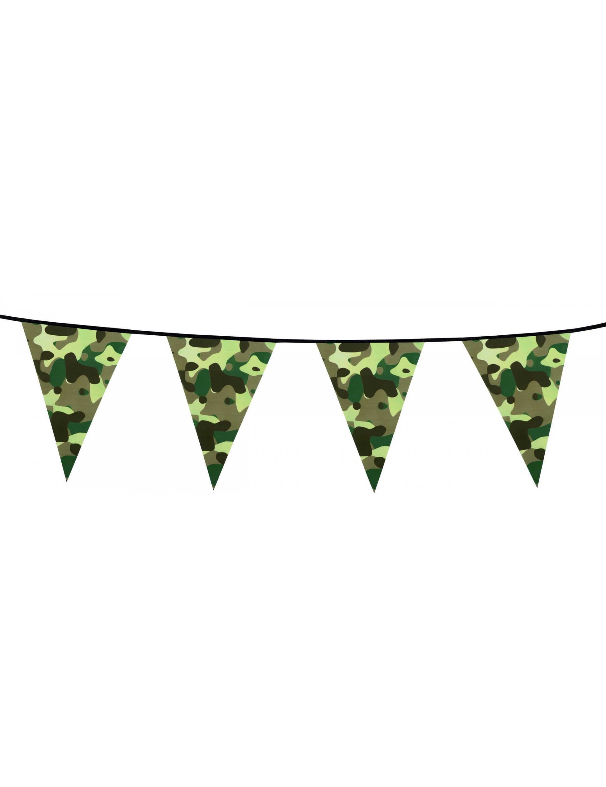 Tento papier meria girlandské meria približne 6 metrov. Je zdobený pennantmi vojenskou tlačou. Táto dekorácia je perfektná pri narodeninách ozbrojených tém.