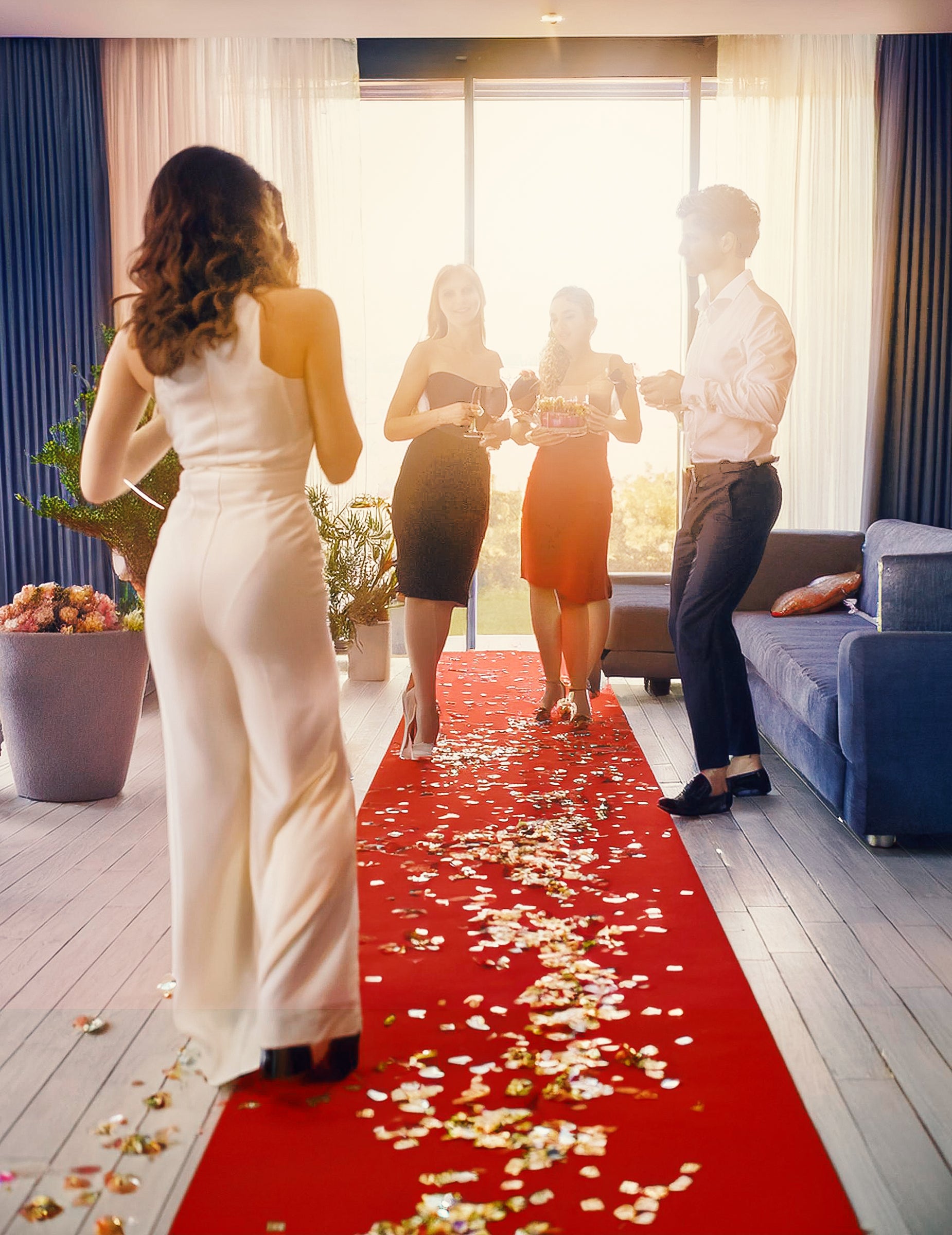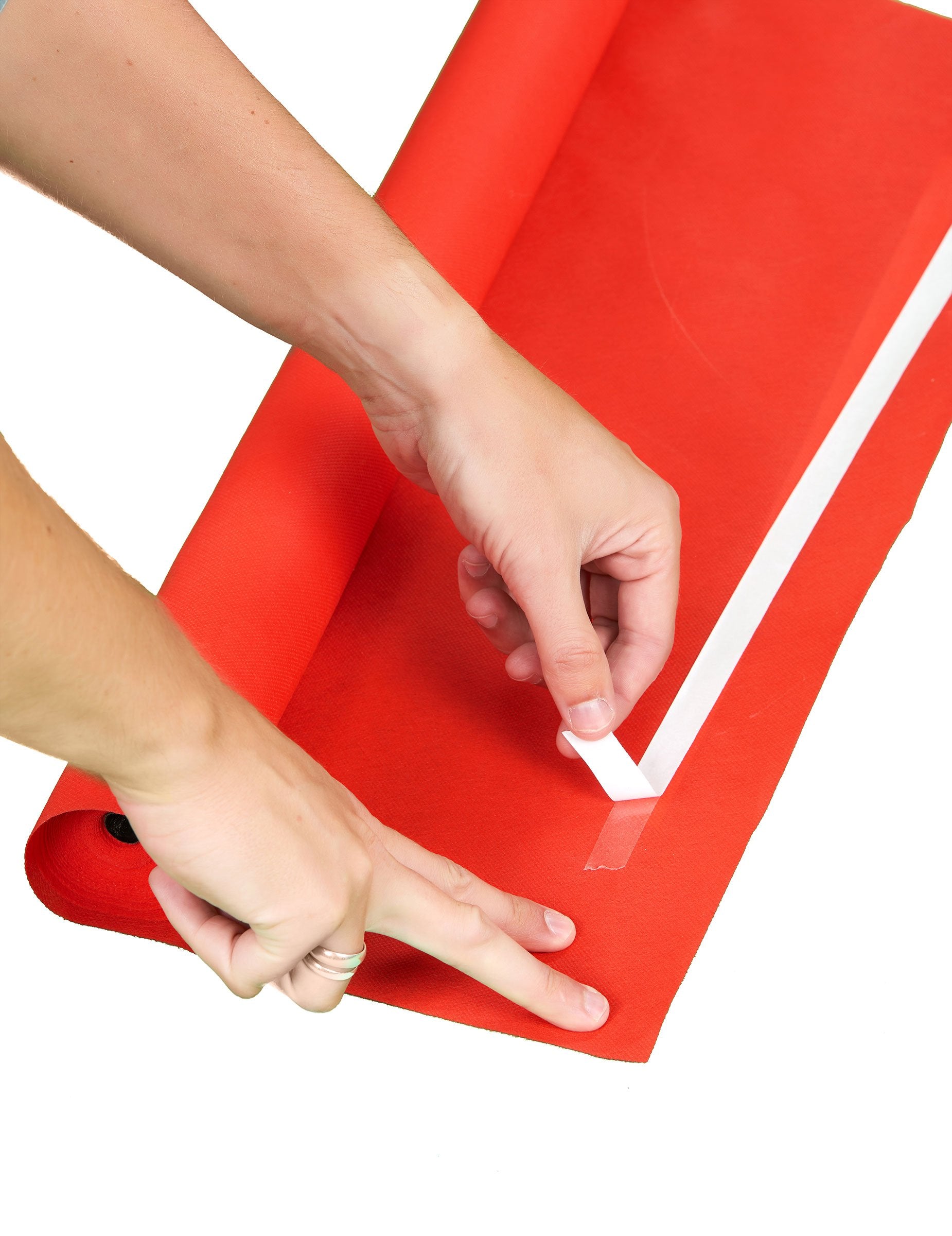 Tento červený koberec s rozmerom 450 x 60 cm. Je pripojený pomocou lepiacej pásky vrátane. Veľmi jemné, je to pre jednotlivé použitie. Tento červený koberec bude ideálny pre vaše večierky na tému kina alebo Hollywoodu.