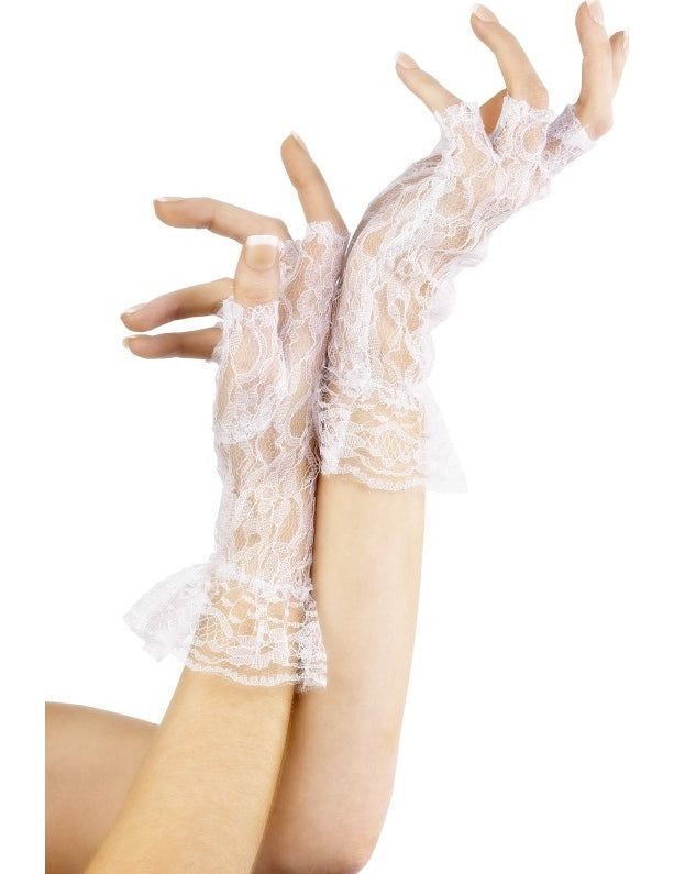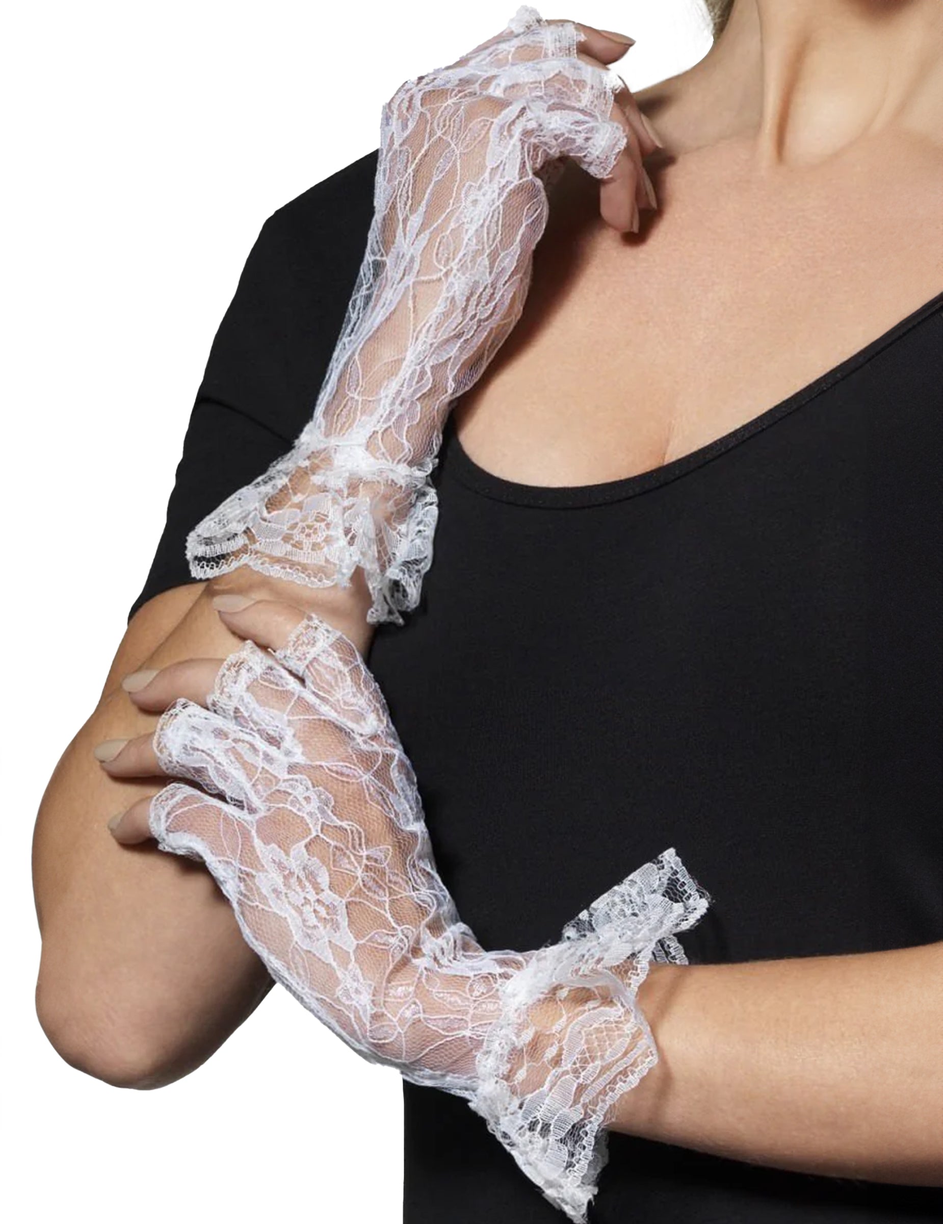 Táto dvojica bielych mitteóznych rukavíc pre ženy je v čipke. Tieto rukavice veľmi ľahké a elegantné, pri každej príležitosti zdokonaľujú váš kostým s jemnosťou.