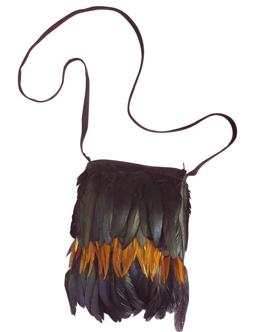 Táto indická taška meria približne 20 x 28 cm. Zdobí, vpredu a vzadu, čierne perie so zelenými odrazmi a karamelovou farbou peria. To sa uzatvára zipsom. Odkaz vám umožní nosiť túto tašku na rameno. Toto príslušenstvo bude ideálne na dokončenie vášho maskovania šéfkuchárom Siouxom počas večera na tému západného alebo karnevalu. Autorské práva Widmann SRL