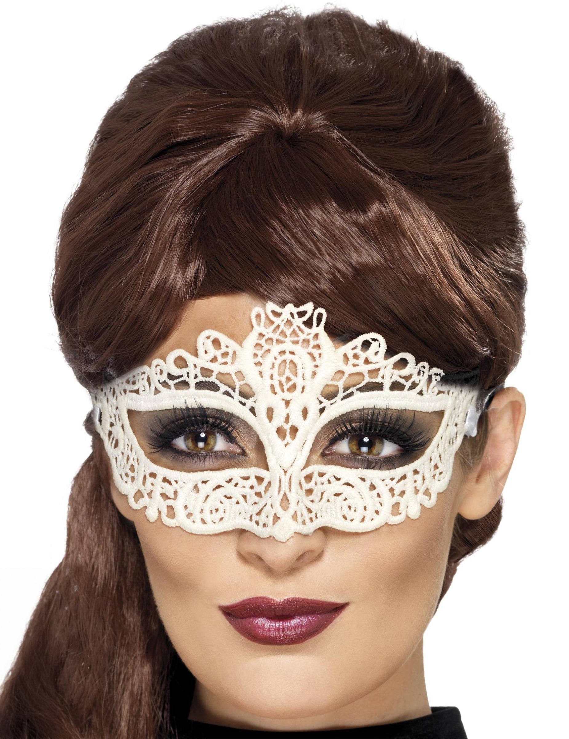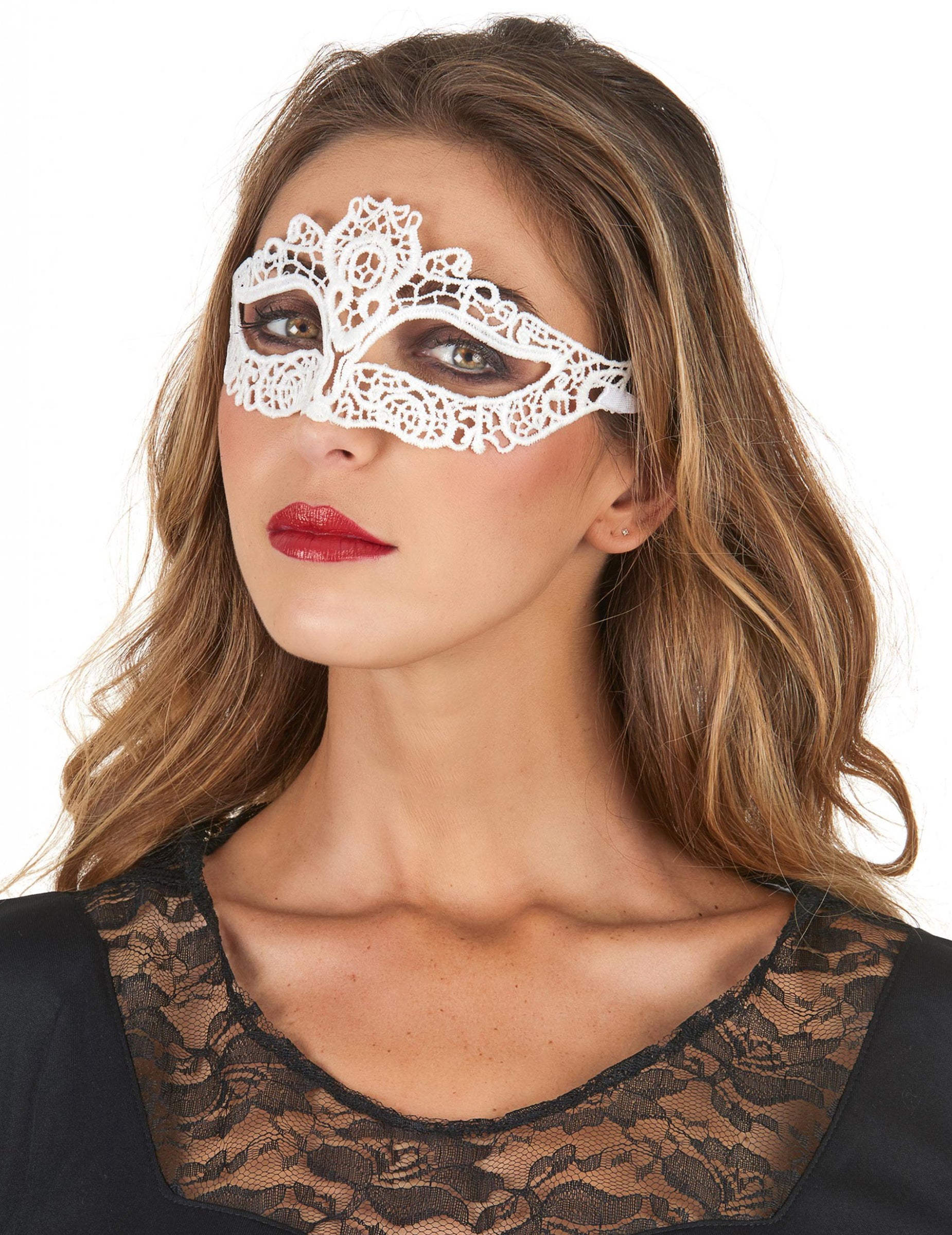 Táto maska pre dospelých je v bielej čipke. Veľmi dobre, dokonale sa ožení s líniami tváre a zvýrazňuje oči. Vytvorené v pevnej čipke je zviazané na zadnej strane hlavy vďaka dvom bielym stuhám. Dokončite svoj outfit touto elegantnou benátskou maskou!