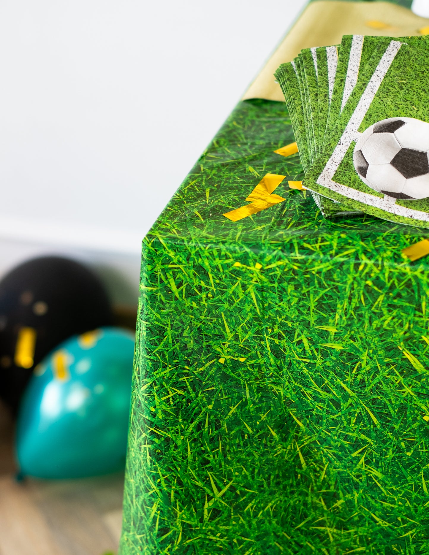 Tento obdĺžnikový zelený obrus je plastový. To meria približne 2,74 x 1,37 metra. Vytlačí sa s prameňmi bylín z niekoľkých odtieňov zelene. Niekoľko žltých dotykov dáva tomuto obruchu viac realizmu, ktorý napodobňuje trávu. Usporiadajte tento obrus na stole a vyneste zeleň svojho koktailu alebo večierku na tému prírody. Unikátna branding Party