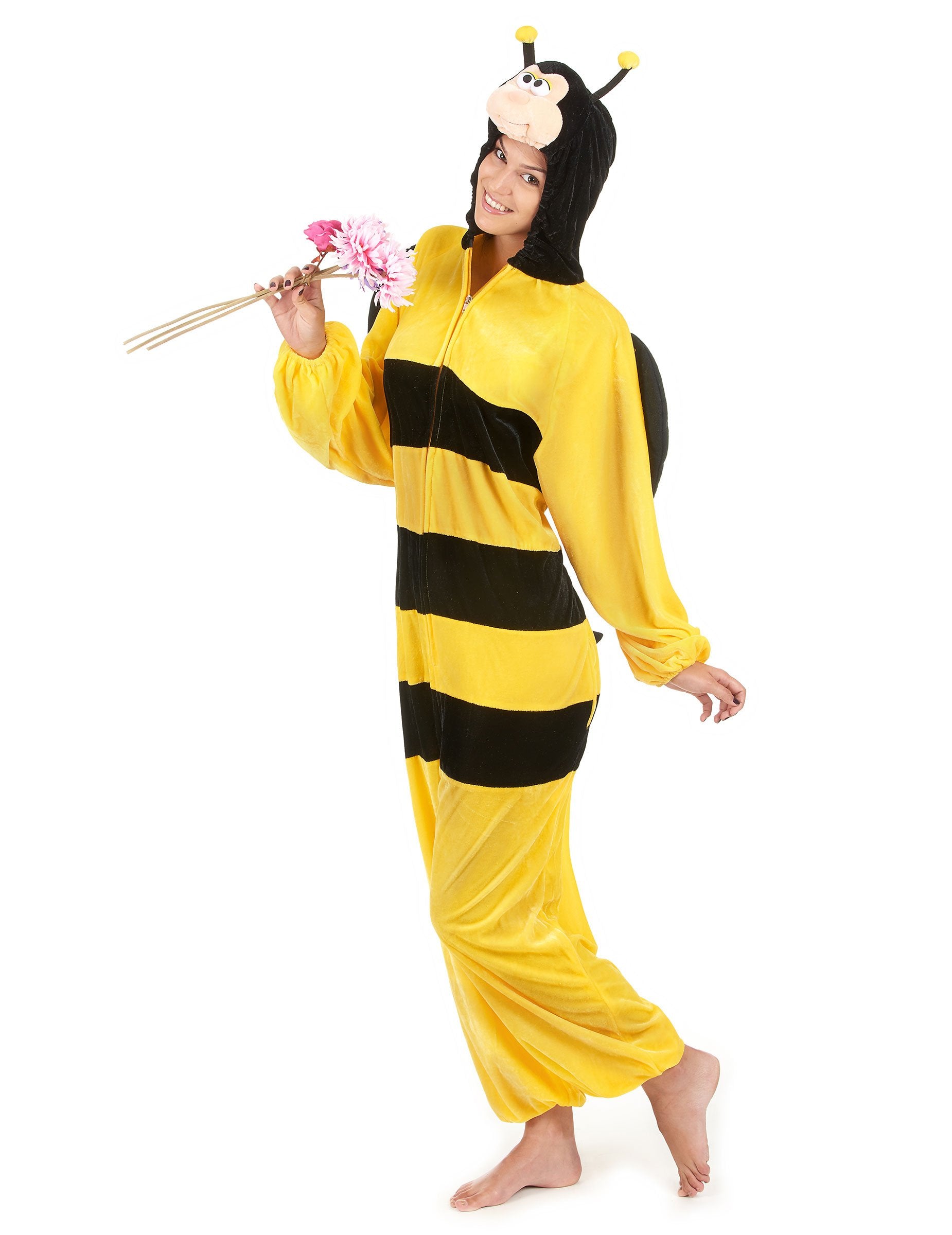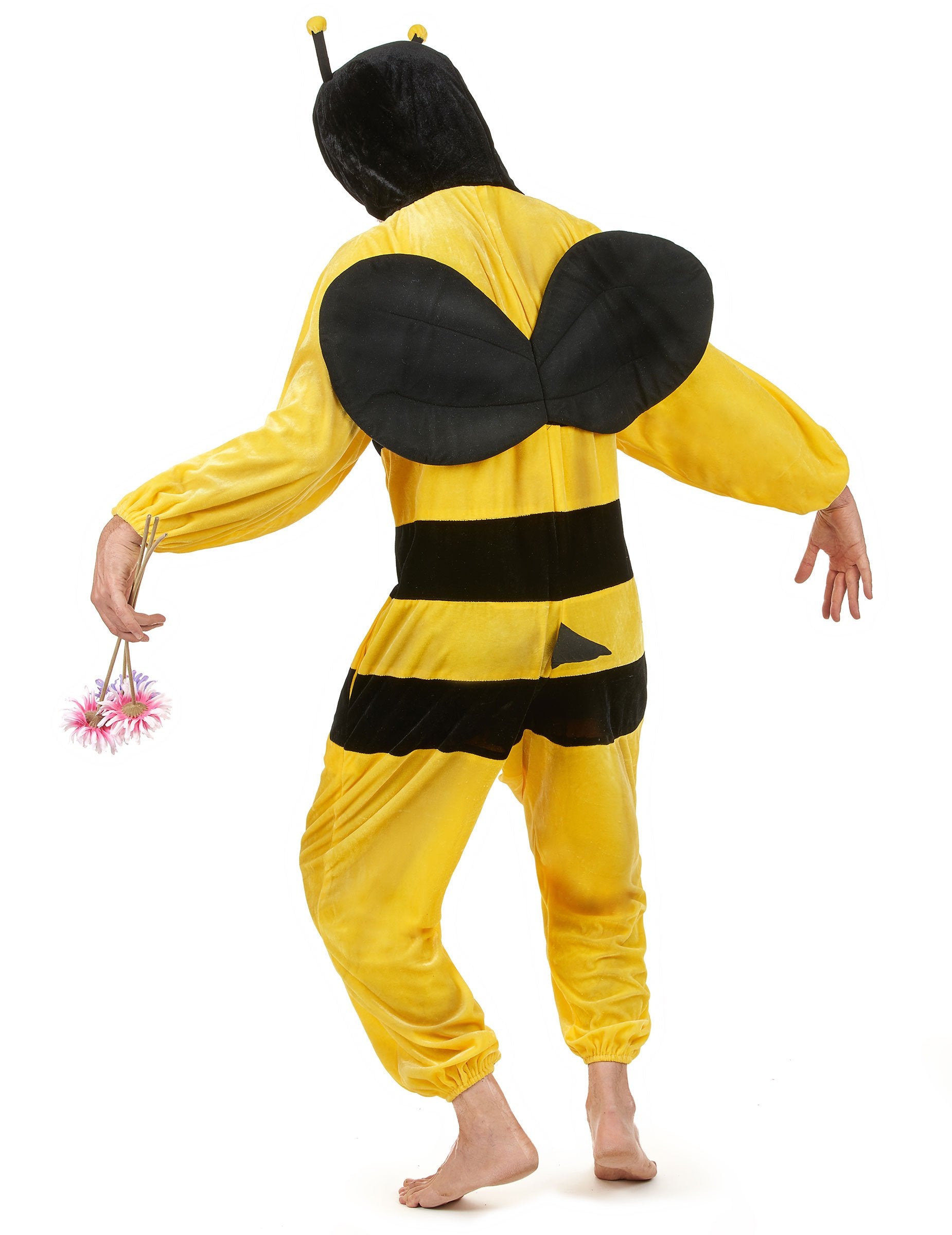 Tento včelí kostým pre dospelých sa skladá z overalu s krídlami. Tento overal s efektom zamatu je žltý s čiernymi pruhmi vpredu aj vzadu. Rukávy a členky sú elastické pre väčšie pohodlie.
