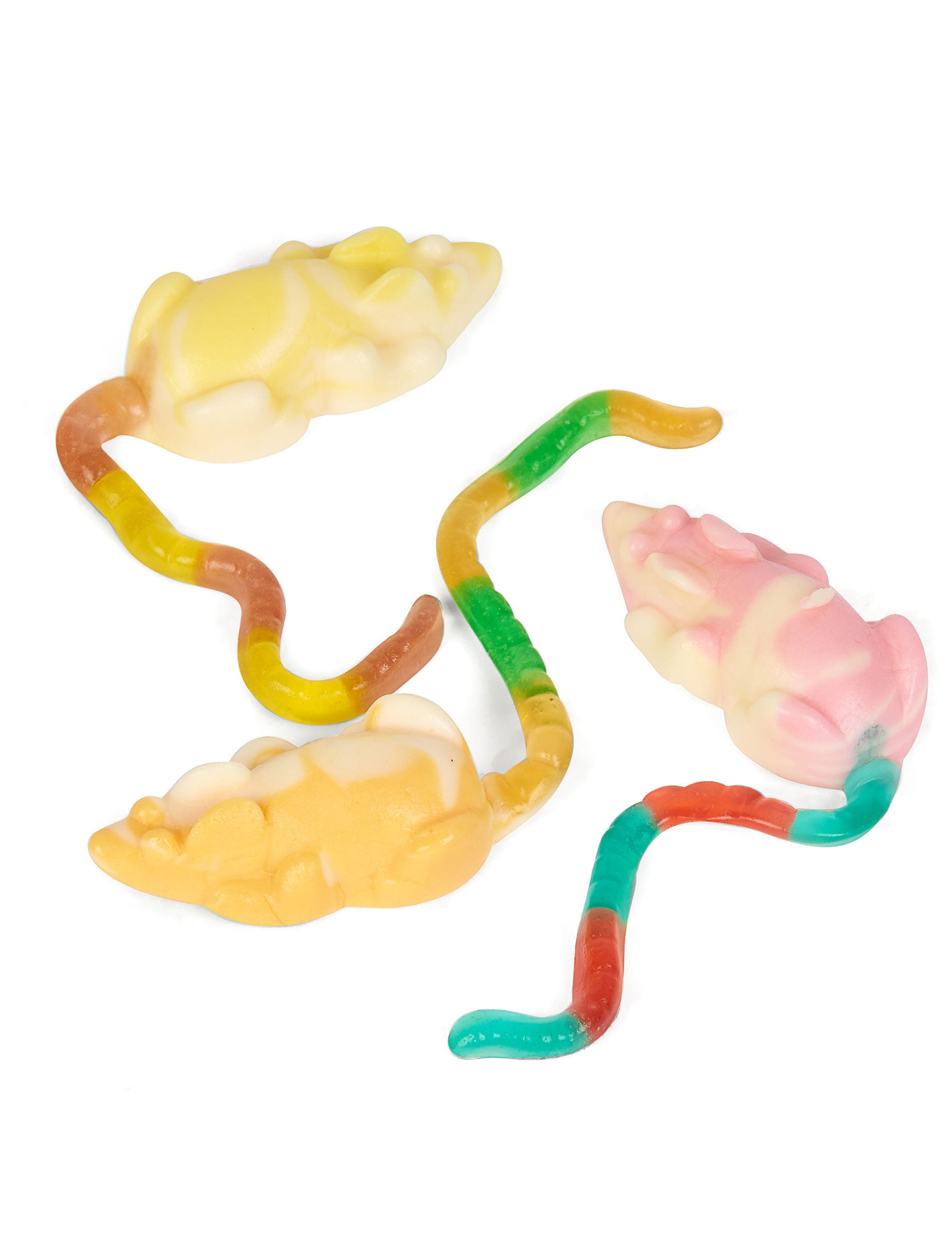 Táto vrecká ponúka 1 kg cukroviniek. Viac farieb, tieto cukrovinky majú tvar myši. Telo je rohož a chvost je v priehľadnom mraze. Pre jedlú alebo samoobslužnú dekoráciu tieto sladké hlodavce urobia napríklad váš tematický večer ako Halloween. Zložky: glukózový sirup, cukor, želatína, acidifikátory: kyselina citrónová a kyselina mliečna, gellingové činidlo: pektín, arómy, farby: E104, E110, E120, E120, E129, E131, rastlinný olej, demokačný čin: vosk, vosk Carnauba.