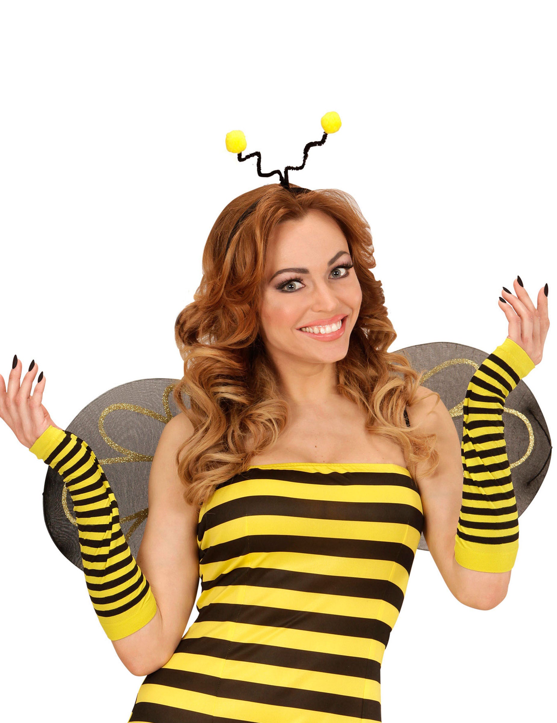 Tieto včeliny sú pre dospelých (krídla, bustier a hlavný skleník nie sú zahrnuté). Sú žlté s čiernymi pruhmi a merajú približne 35 cm. Tieto rukavice budú ideálne na dokončenie kostýmu včiel pre karneval alebo inú maskovanú udalosť. Autorské práva Widmann SRL