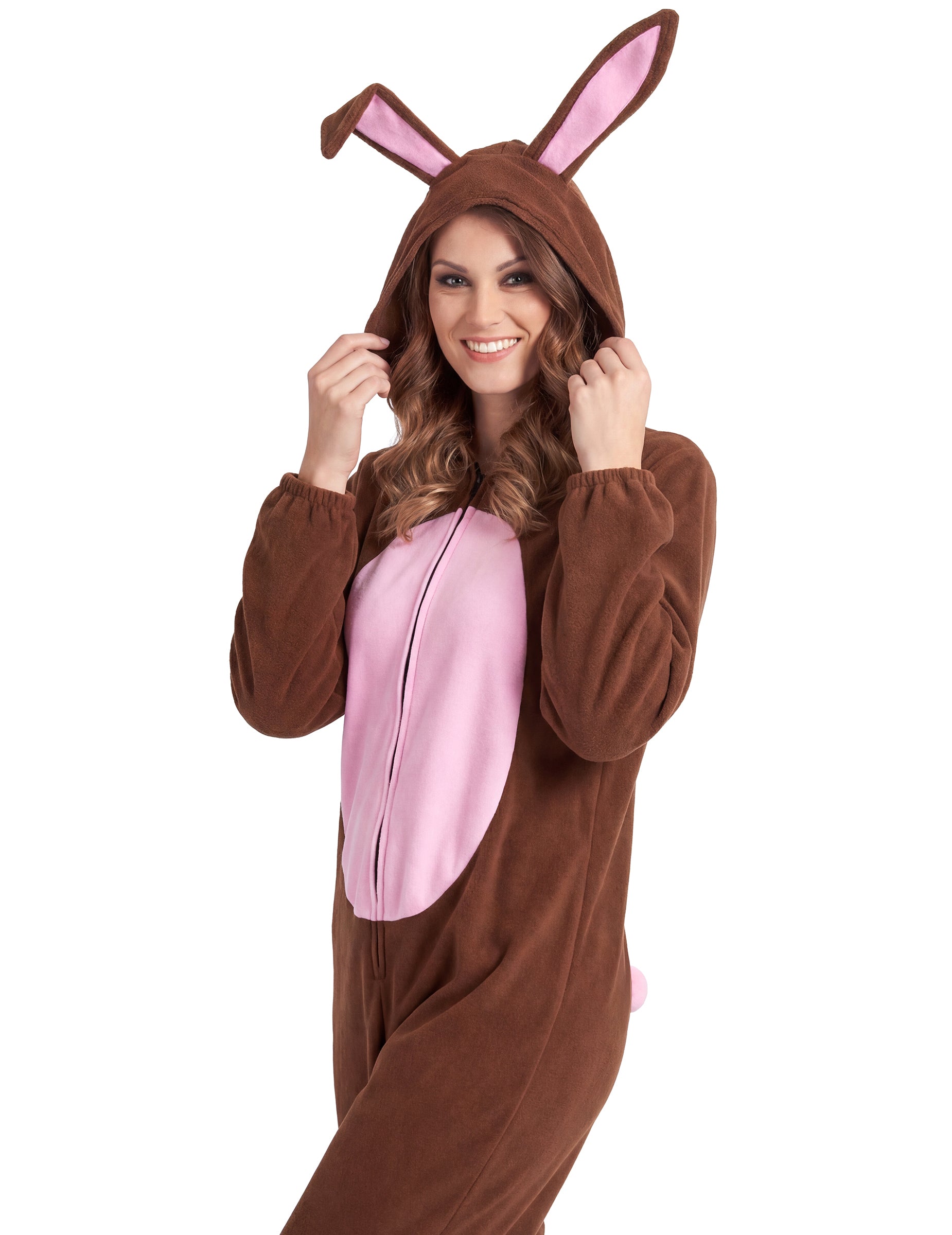 Tento králik kostým pre ženy je kombináciou. Hnedá kombinácia je v polárnom účinku. Brucho a interiér uší sú ružové pre najviac rozkošný efekt! Kombinácia sa zavrie vpredu so zipsom a uši majú rám, aby ich zložil, ak si budete priať. K dispozícii v jednej veľkosti, meria dĺžku 155 cm (bez kapoty). Rozhodnite sa pre túto roztomilú a zábavnú definitáciu pri príležitosti tematickej párty alebo pre karneval.