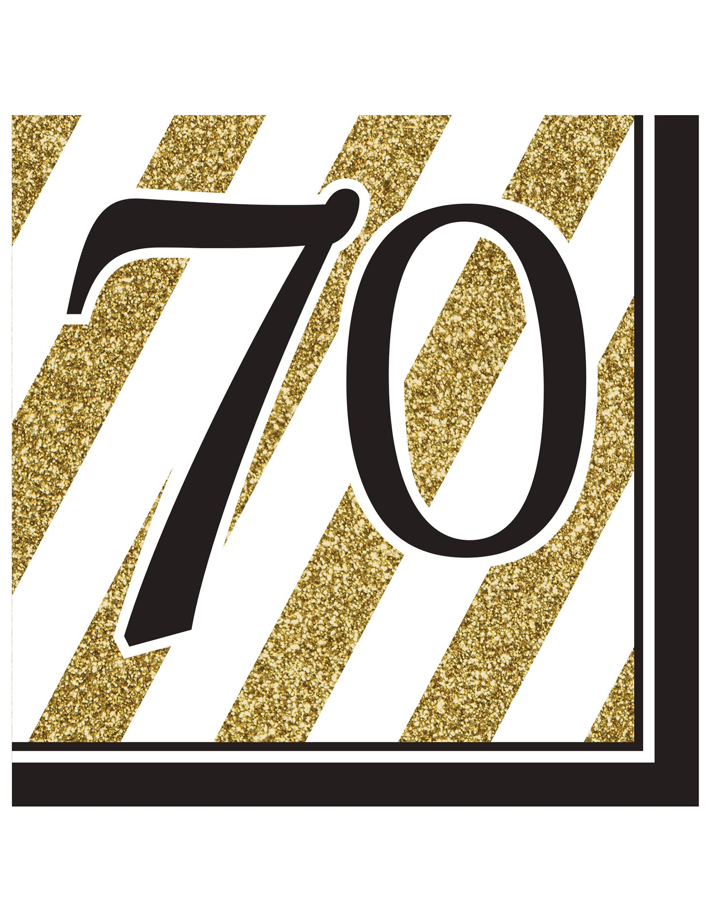 Týchto 16 narodeninových uterákov sa predáva v rovnakom pozemku. Sú vyrobené z papiera a majú v strede postavu „70“. Každý z týchto uterákov je vytlačený niekoľkými bielymi škrabancami a efektom trblietok. Majú rozmer približne 33 x 33 cm, keď sú rozložené. Tieto 70 -ročné uteráky budú ideálne na to, aby sa vaše narodeniny stali elegantnou dekoráciou!