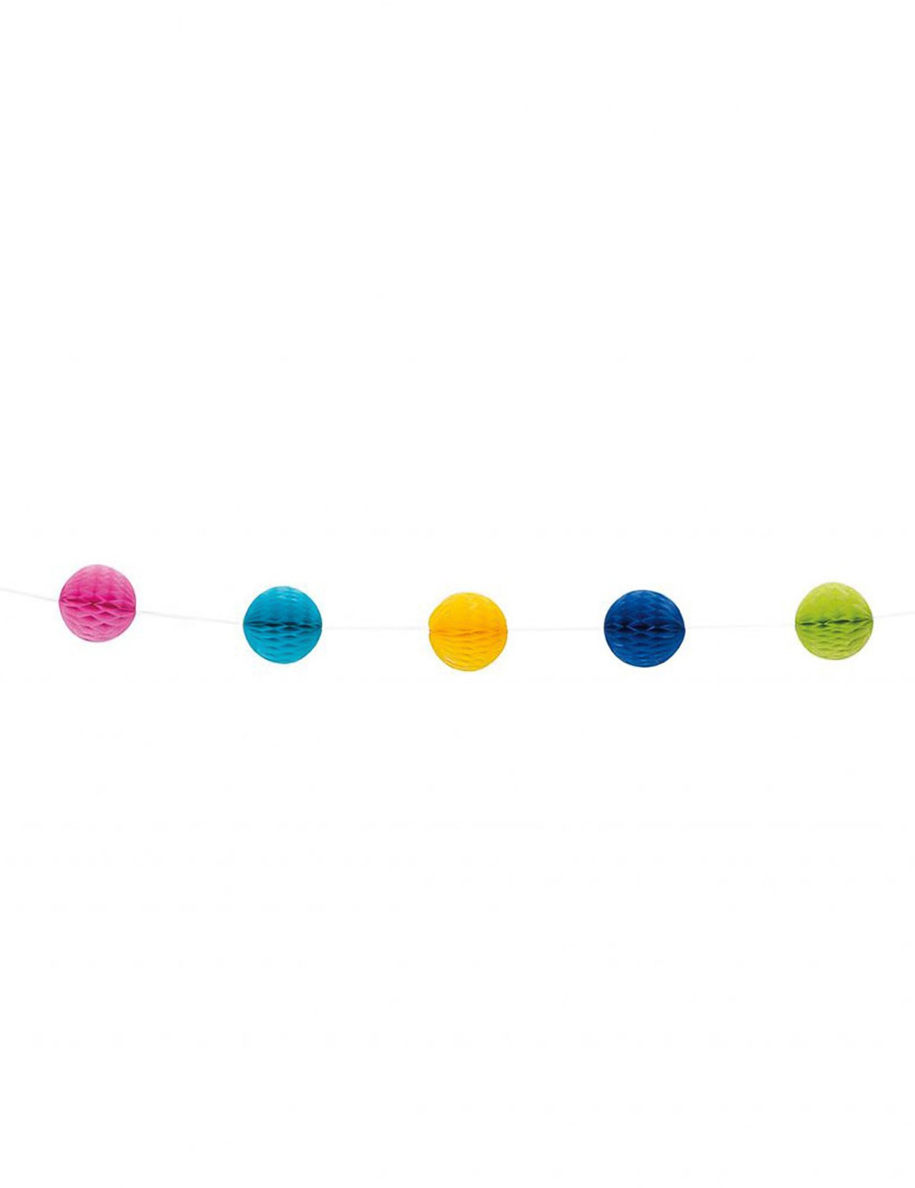 Girlanda z farebných voštinových guličiek 213 cm a 11 pom-pomov