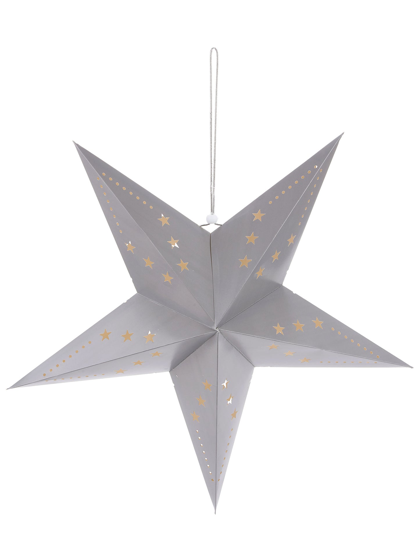 Táto zavesená dekorácia má šedú hviezdu s priemerom 60 cm. Vďaka striebornej šnúre sa musíte rozvinúť a pripojiť, kdekoľvek chcete. Napríklad pre bábätko alebo akúkoľvek inú slávnostnú príležitosť bude táto kartónová hviezda najkrajšie.