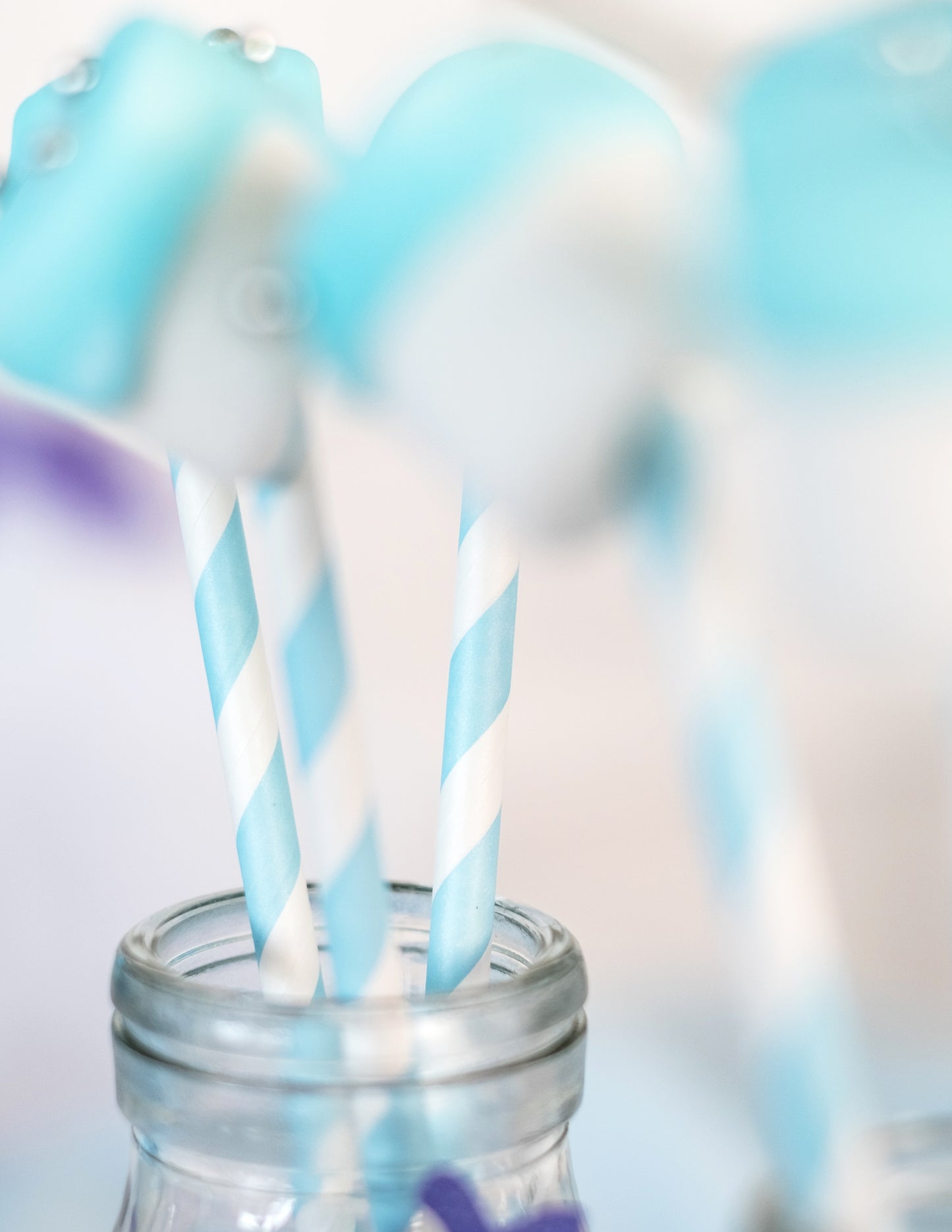 10 pastelových modrých pruhovaných kartónových slamiek 19,5 cm