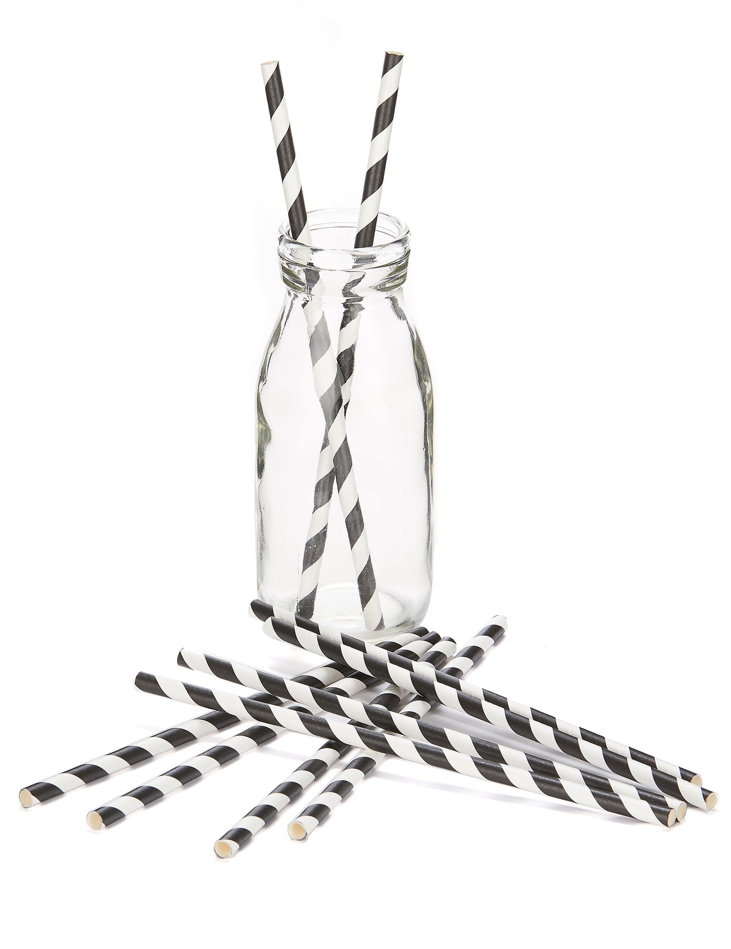 10 čiernych pruhovaných kartónových slamiek 19,5 cm