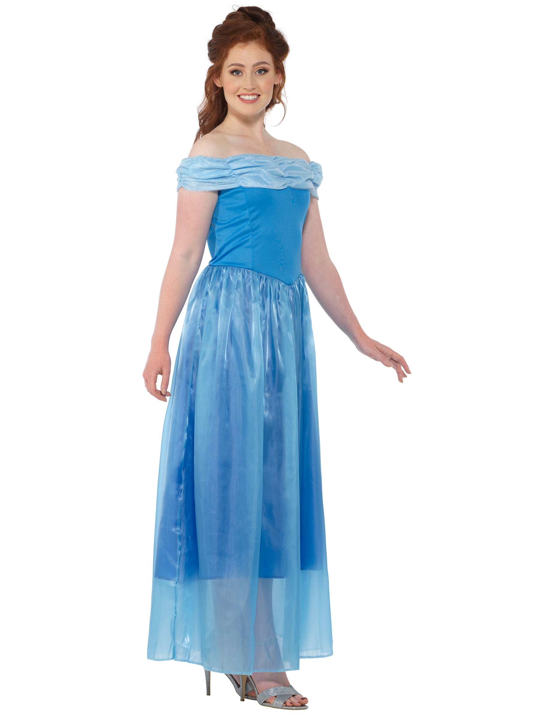 Celé modré, princeznovské šaty ponúka vykresľovanie magický vďaka saténovej tkanine. Vrch je priliehavý a drží na mieste elastický pás skrytý v Bardot golier v flitrovaný tyl !