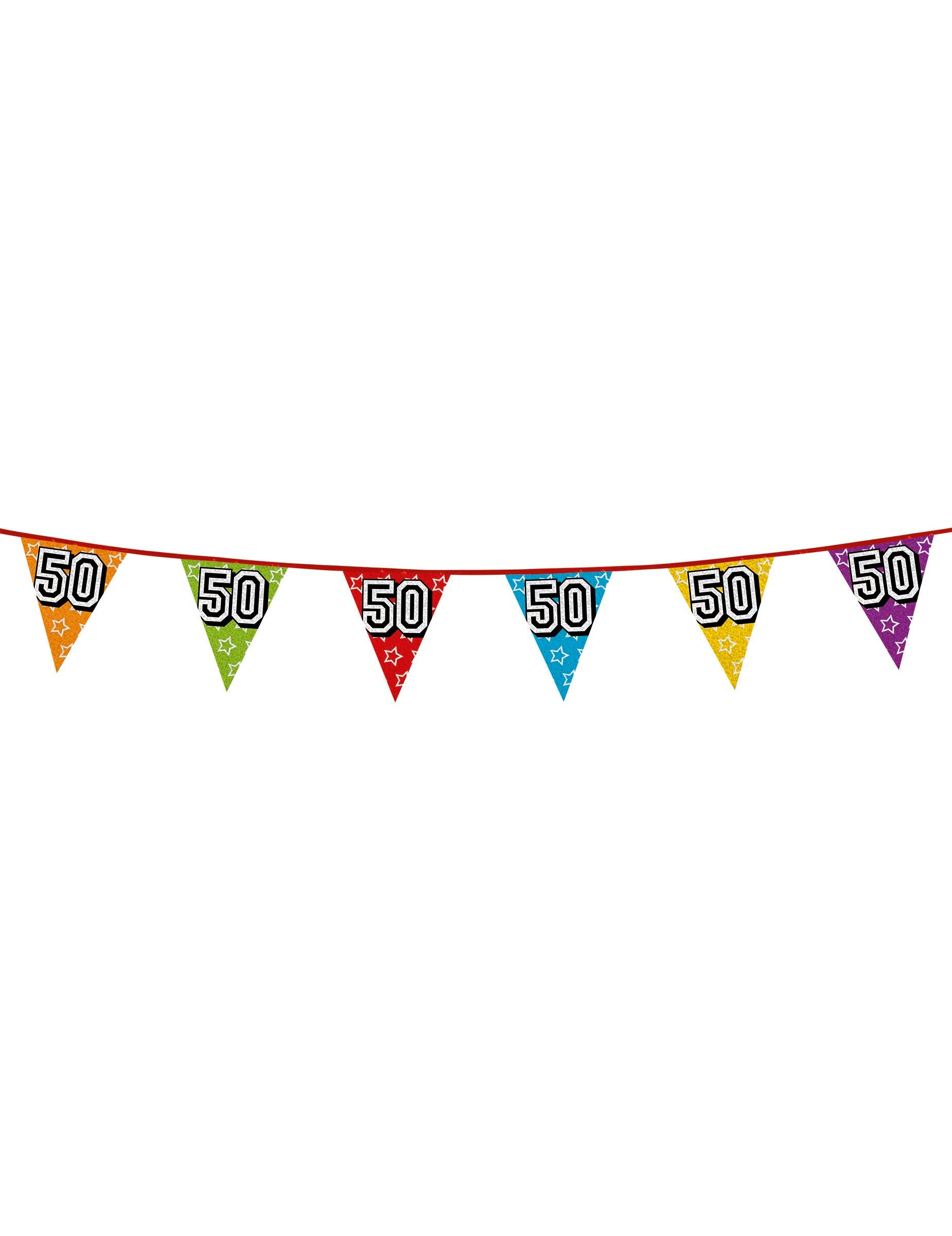 Skladá sa zo 16 holografických vlajočiek s potlačou čísla 50. Každá vlajočka má približne 29 cm a zdobia ju malé strieborné hviezdičky. Červená šnúrka spája vlajočky dohromady a umožní vám girlandu jednoducho zavesiť.