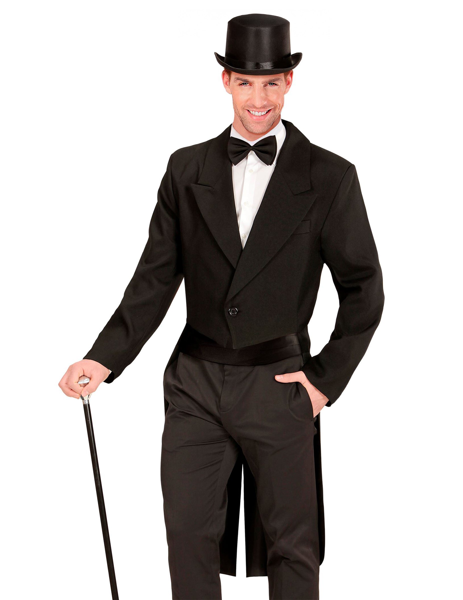 Táto chvostová bunda je určená pre mužov (klobúk, nohavice, košeľa, motýlik, topánky, klobúk a trstina, ktorá nie je zahrnutá). Veľmi elegantné, bunda je úplne čierna s predným tlačidlom, ktoré vám umožňuje zatvárať ho. Rezanie chvosta je dobre rešpektované: veľmi dlho za sebou a oveľa kratšia spredu, čo dodáva dotyk elegancie akéhokoľvek oblečenia! Buďte elegantní za všetkých okolností, dokonca aj pre váš maskovaný večer a zahrajte si gentleman Dandy so všetkými peknými dievčatami! Autorské práva Widmann SRL
