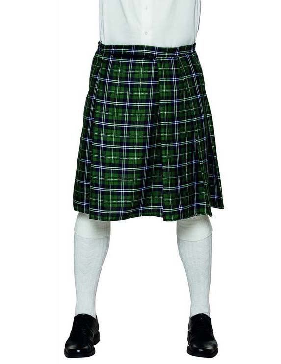 Tento zelený škótsky kilt je pre mužov (vysoké, biele ponožky a topánky, ktoré nie sú zahrnuté). Tento škótsky Kiit je kockovaný so zeleným a bielym. Má prúžok čierneho škrabanca vo veľkosti. Sukňa meria dĺžku približne 57 cm. Tento Kilt je ideálny na dokončenie kostýmu Ecadese počas prestrojených večerov alebo pre karneval.