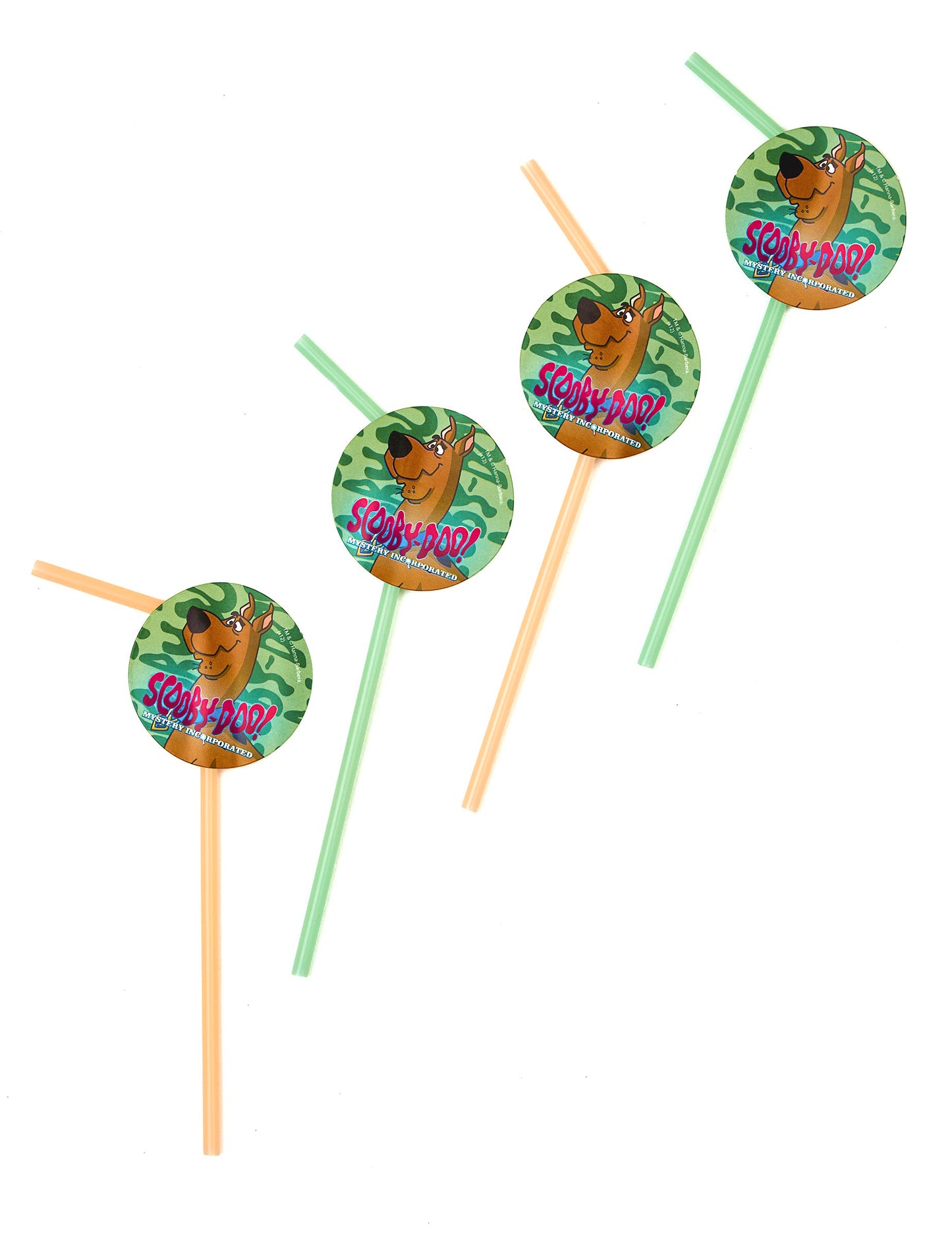 Táto šarža pozostáva z 8 slamiek na základe oficiálnej licencie Scooby-Doo. Tieto flexibilné slamky sú priehľadné a merajú dĺžku približne 21 cm. Majú medailón predstavujúci hlavu Scooby-Doo na zelenom pozadí. Medailóny majú priemer asi 6 cm. Tieto slamky dokonale dokončia dekor narodeninového stola vášho syna fanúšika slávneho Scooby-Doo!