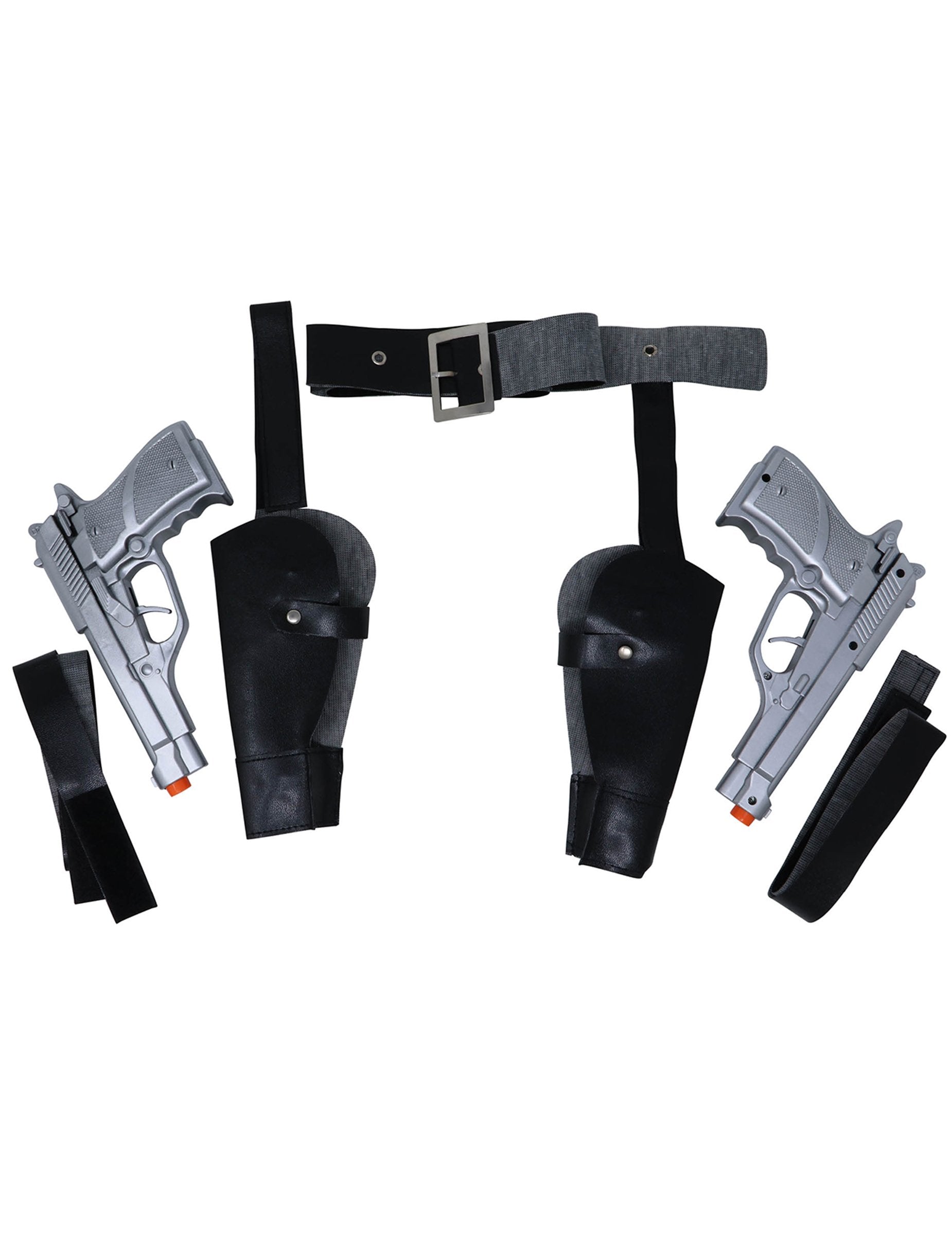 Táto šarža pozostáva z nastaviteľného pásu, dvoch pištolí v ich odnímateľných prípadoch a dvoch popruhov, ktoré môžete pripojiť k stehnám pre viac pravdivý ako životný efekt. Bude to ideálne na zdokonalenie maskovania priľnavosti!