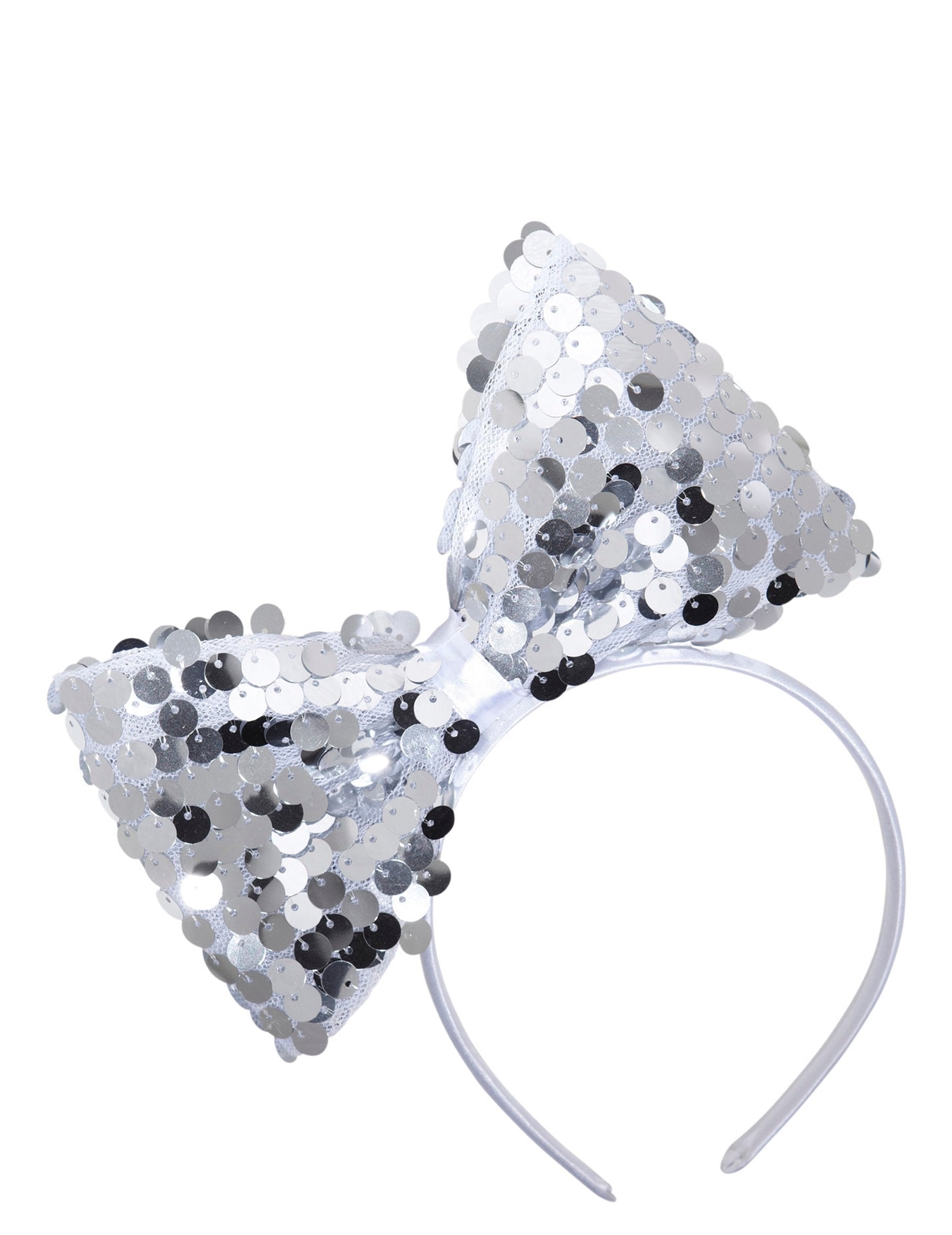 Toto čelenka pre dospelých je zakončené veľkým Strieborná flitrovaná mašľa.