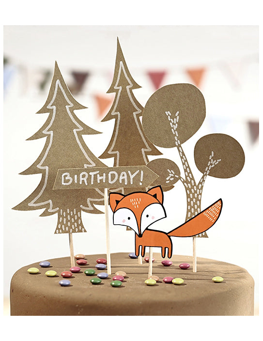 Táto časť má 5 dekorácií pre tortu na tému lesa. Každá dekorácia je v prirodzenom farebnom lepenke (s výnimkou líšky), ktorá sa vyskytuje na drevených hrotoch, ktoré vám umožnia zasadiť ich na koláč alebo vianočný denník. Tri reprezentujú stromy, jeden predstavuje signalizačný panel „narodeniny“ a posledný je vytlačený červenou líškou. S týmito dekoráciami, aby ste vyzdobili svoj denník, rozhodnite sa pre elegantnú triezvosť pre vaše oslavy konca roka.