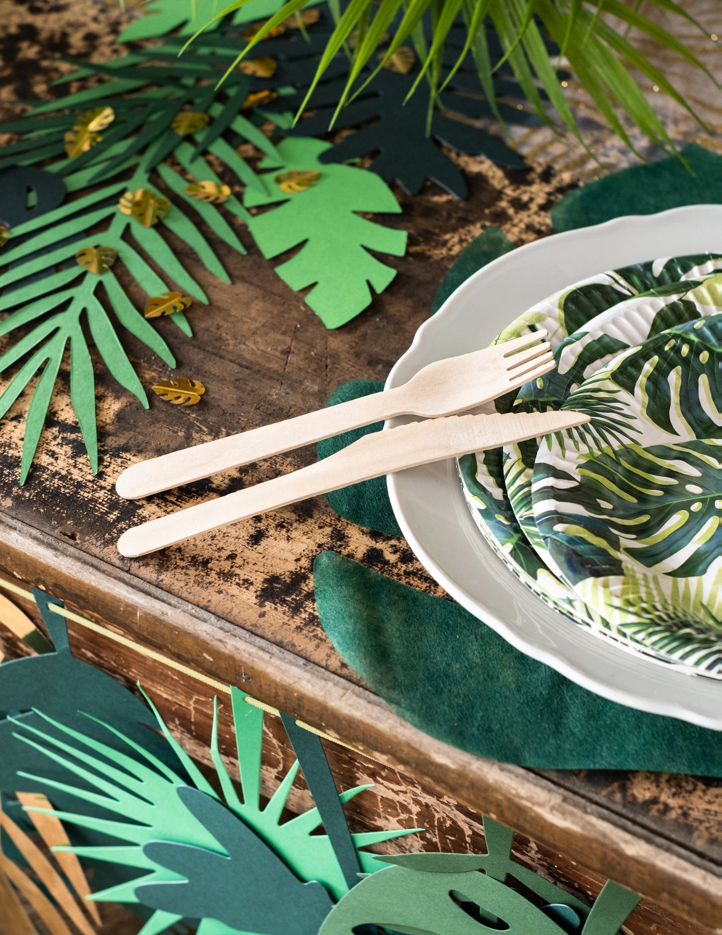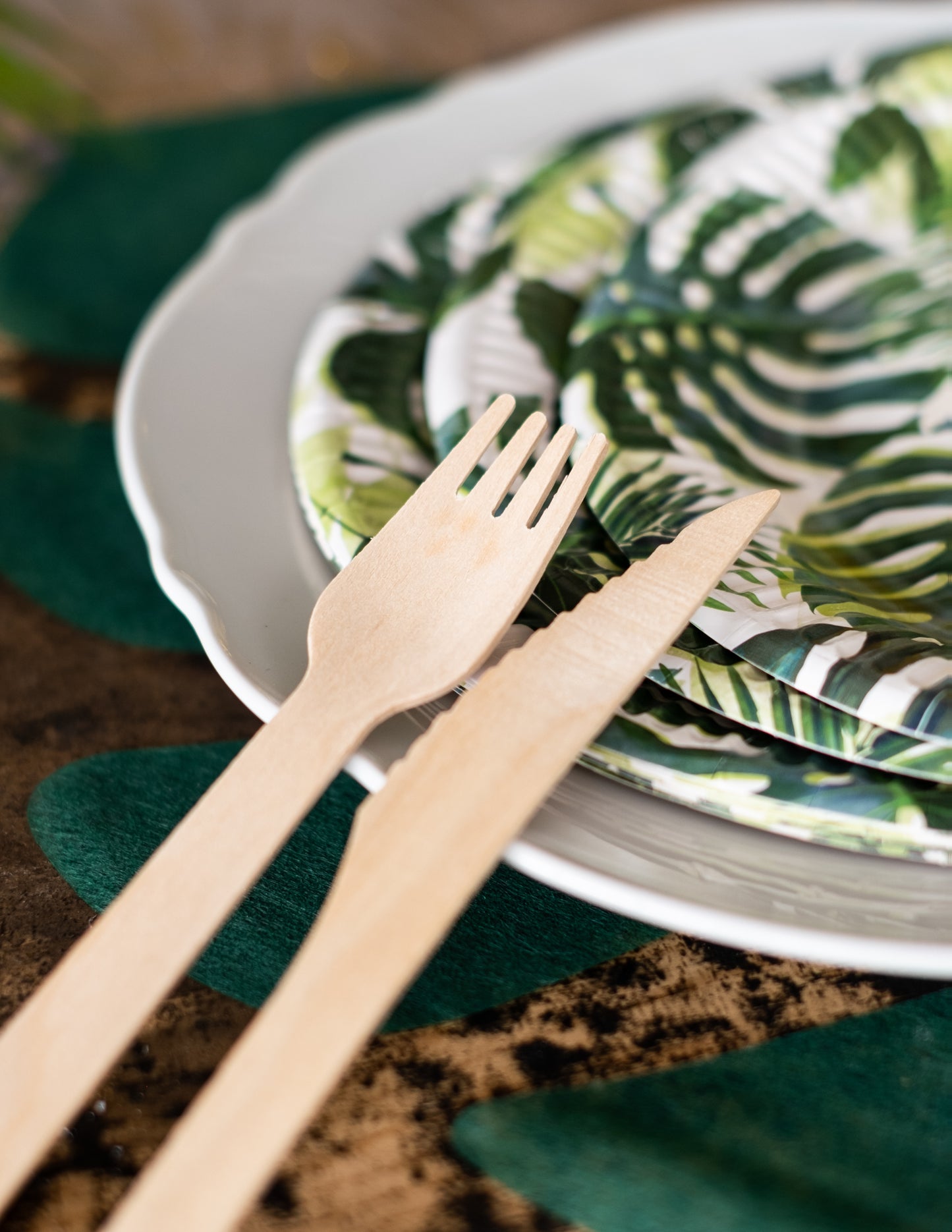Táto šarža sa skladá z 18 surových drevených príborov: 6 vidličiek, 6 lyžičiek a 6 nožov. Sú vysoké 16 cm. Tieto príbory budú ideálne pre prírodný stôl počas narodeninovej oslavy alebo pre krásny svadobný stôl.