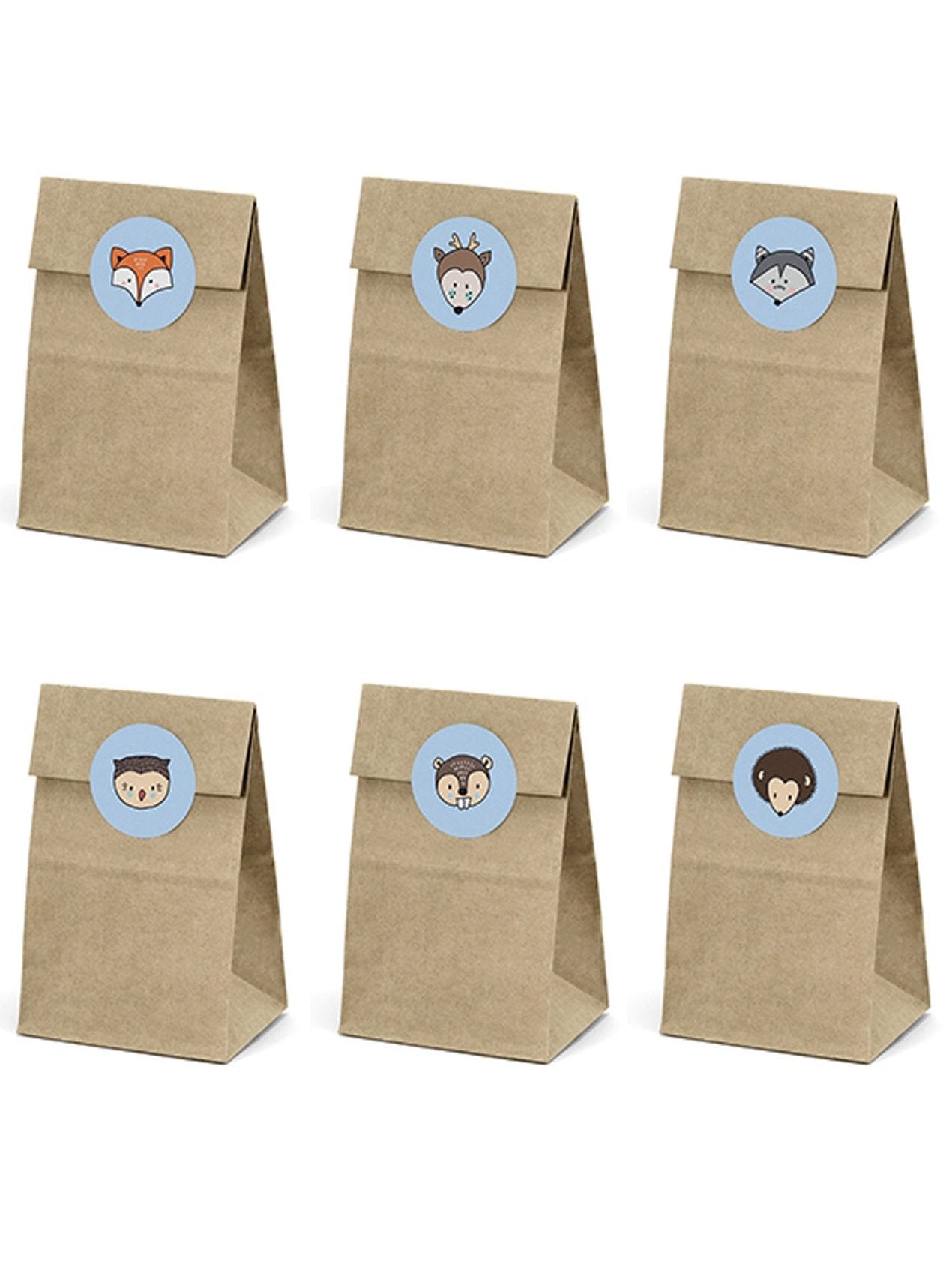 6 papierové tašky a nálepky so zvieratkami z lesa