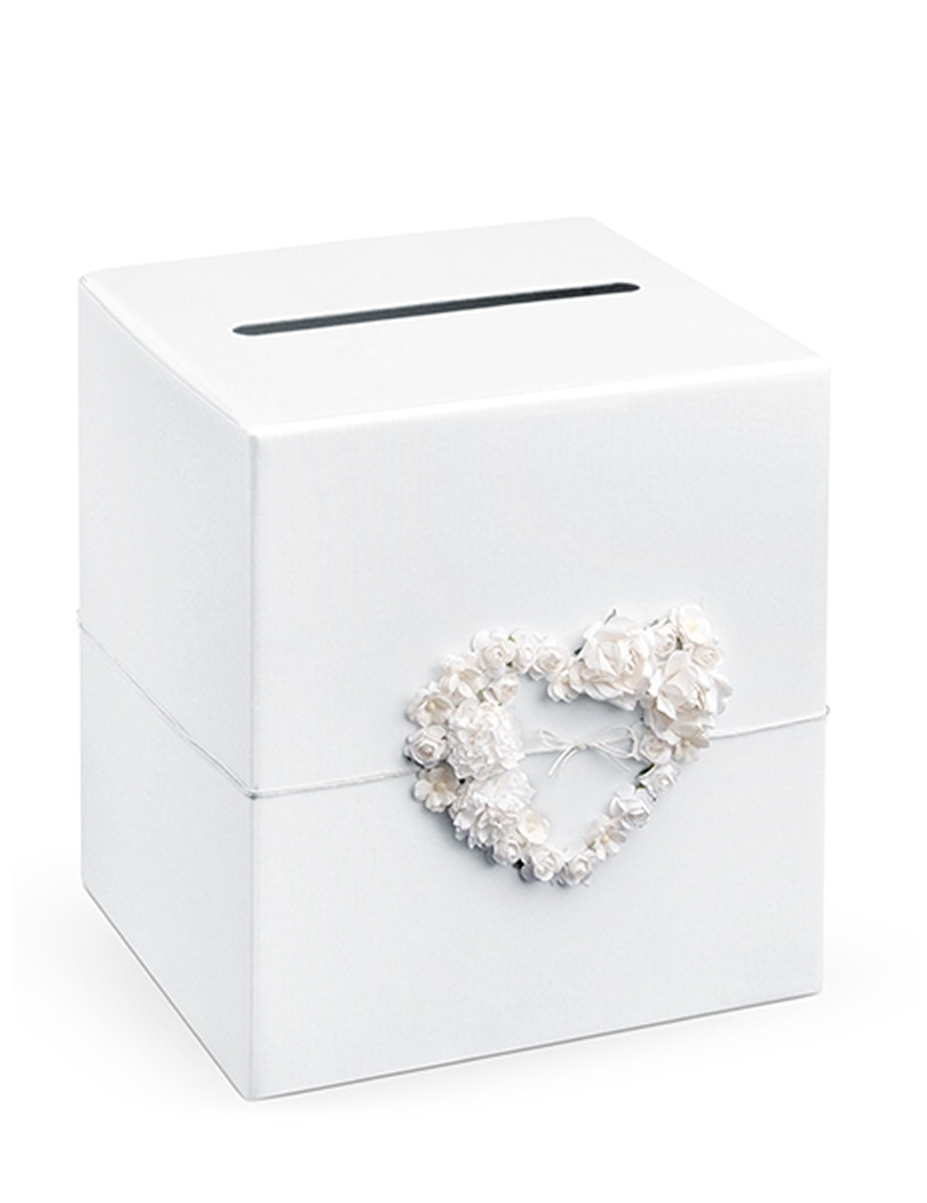 Biela urna s ružovým srdcom 23,5 x 24 cm