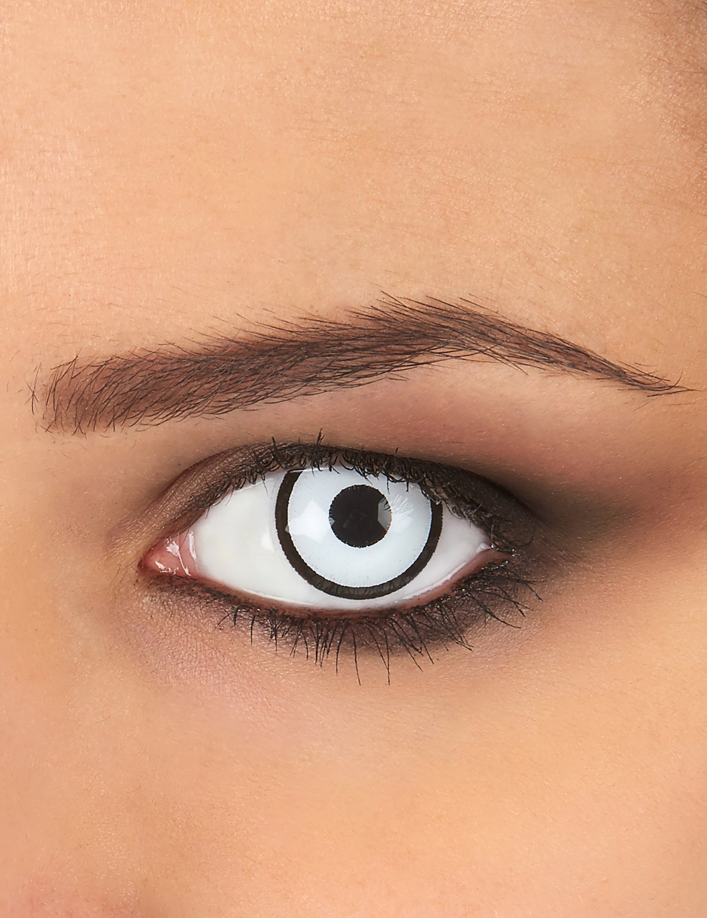 Tento pár šošoviek pre dospelých je platný 1 rok v závislosti od dátumu otvorenia malých sklenených fliaš. Meranie priemeru 14,5 mm sú biele a čierne. Perforované v ich centre pre vášho žiaka, počas prístavu nepoužívajú vašu víziu. Napríklad pre maskovanie zombie alebo démon počas vášho halloweenského večera budú tieto šošovky účinne vystrašiť!