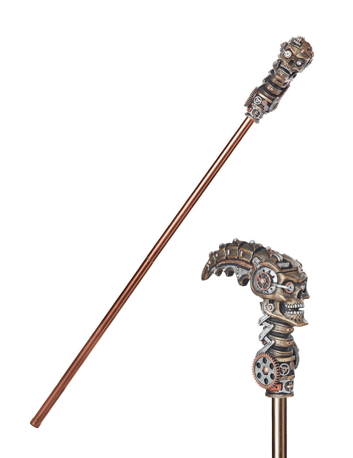 Táto trstina Steampunk je určená pre dospelých. Dodáva sa v 2 dieloch a pri namontovaní meria dĺžku približne 100 cm. Je bronzová, s lebkou s parným pohľadom na vrchol (zubné skrutky ...). Toto príslušenstvo bude originálne na dokončenie vášho maskovania Steampunk počas maskovanej strany.