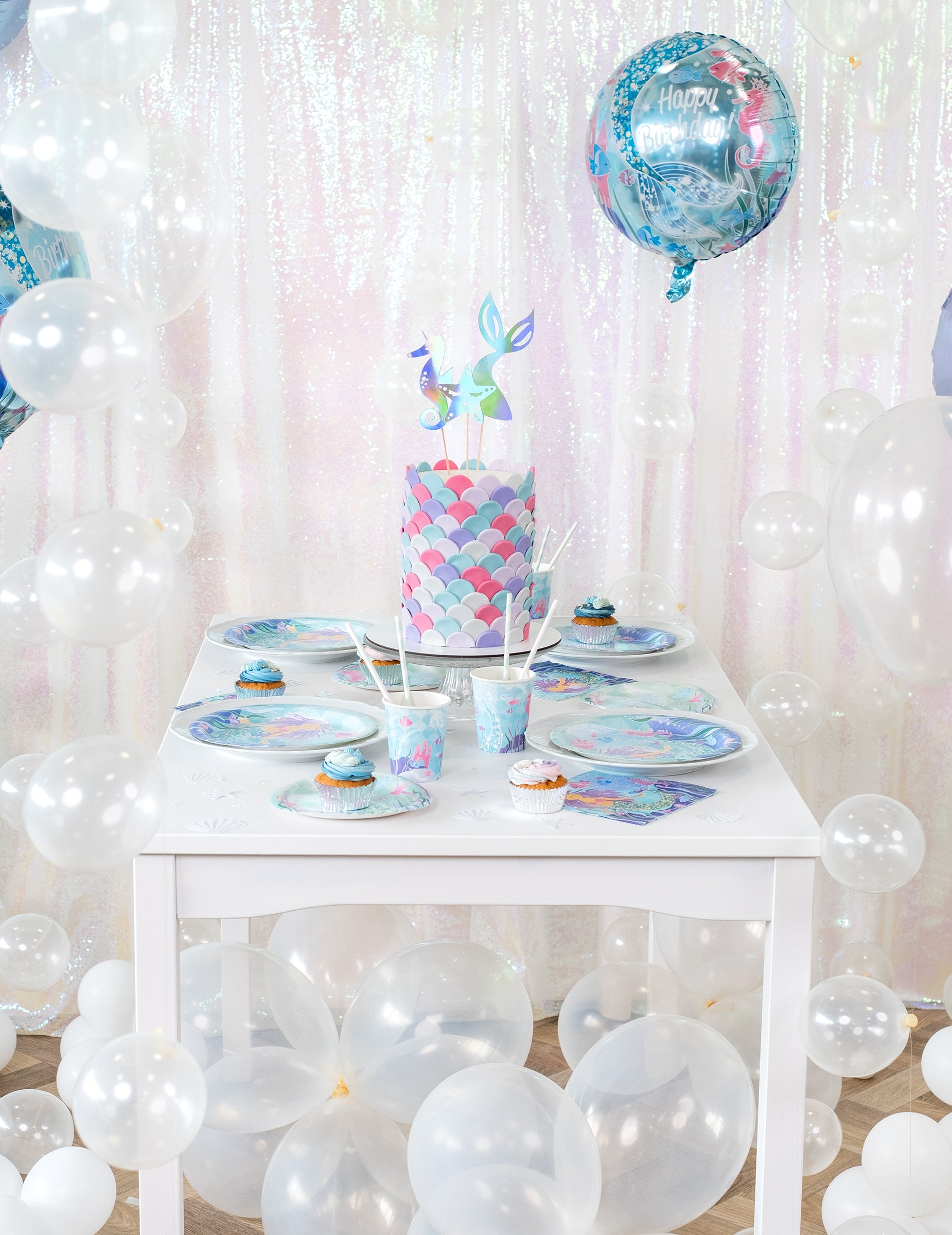 Táto sada 8 tanierov s motívom morskej panny z kartónu je ideálna na oslavu narodenín vášho dieťaťa. S priemerom 21,9 cm má každý tanier farebný vodný motív v odtieňoch modrej a fialovej. Na tanieri je krásna morská panna plávajúca medzi malými rybkami. Vytvorte rozprávkovú výzdobu s tematikou morskej panny pre vydarenú narodeninovú párty.