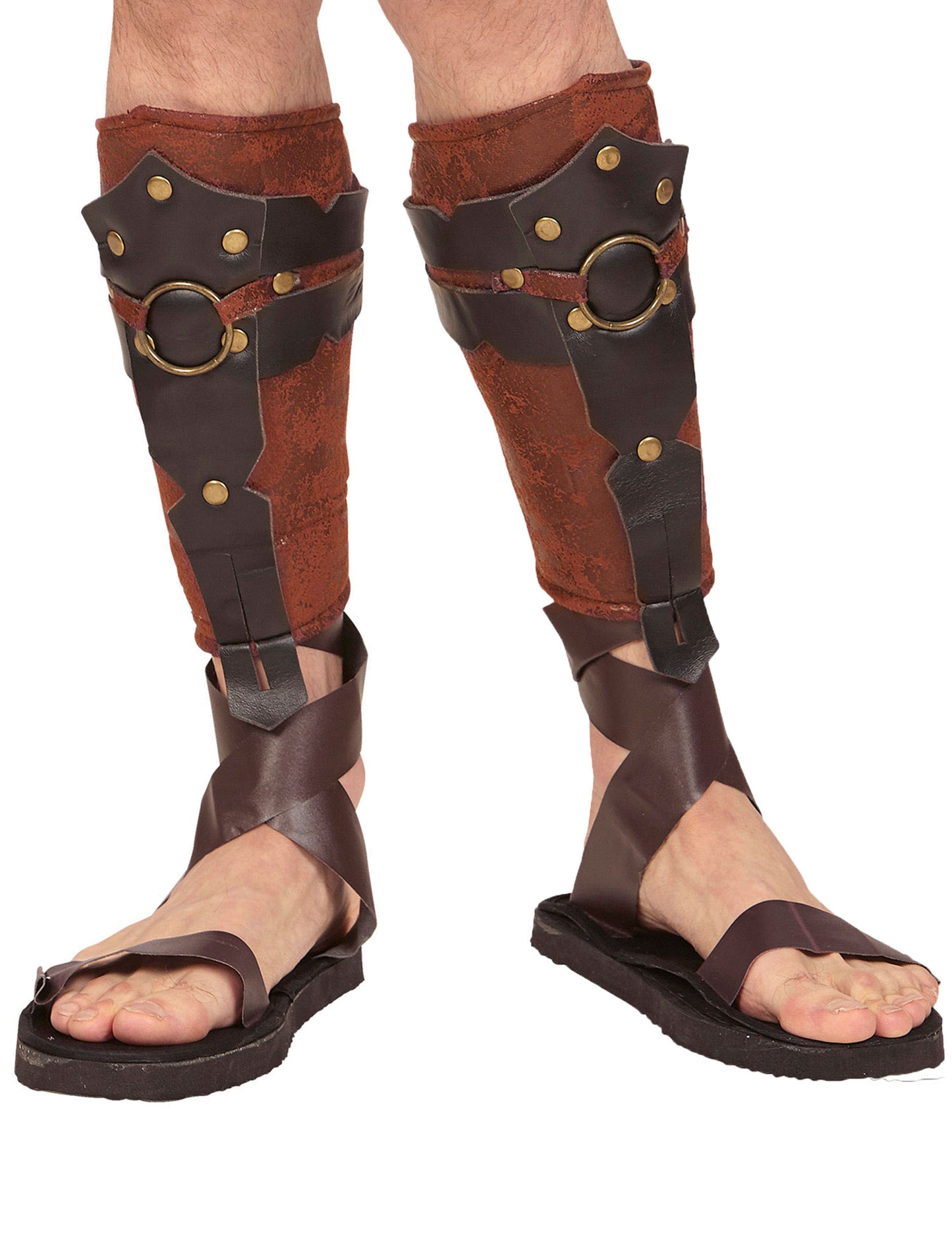 Tieto faux kožené-tibia sú hnedé s čiernymi prúžkami a zlatými nitami. Očné oči im umožňujú priviazať ich k teliatm. Príslušenstvo nevyhnutné na to, aby sa dosiahol dotyk realizmu a dokončenie maskovania rímskeho gladiátora. Autorské práva Widmann SRL