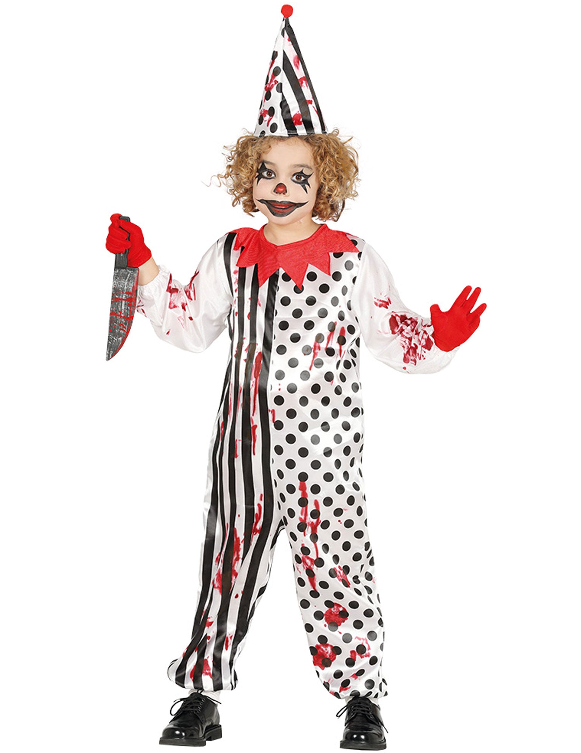 Tento zombie harlekýnsky kostým pre deti obsahuje klobúk a overal (rukavice, nôž a topánky nie sú súčasťou balenia).