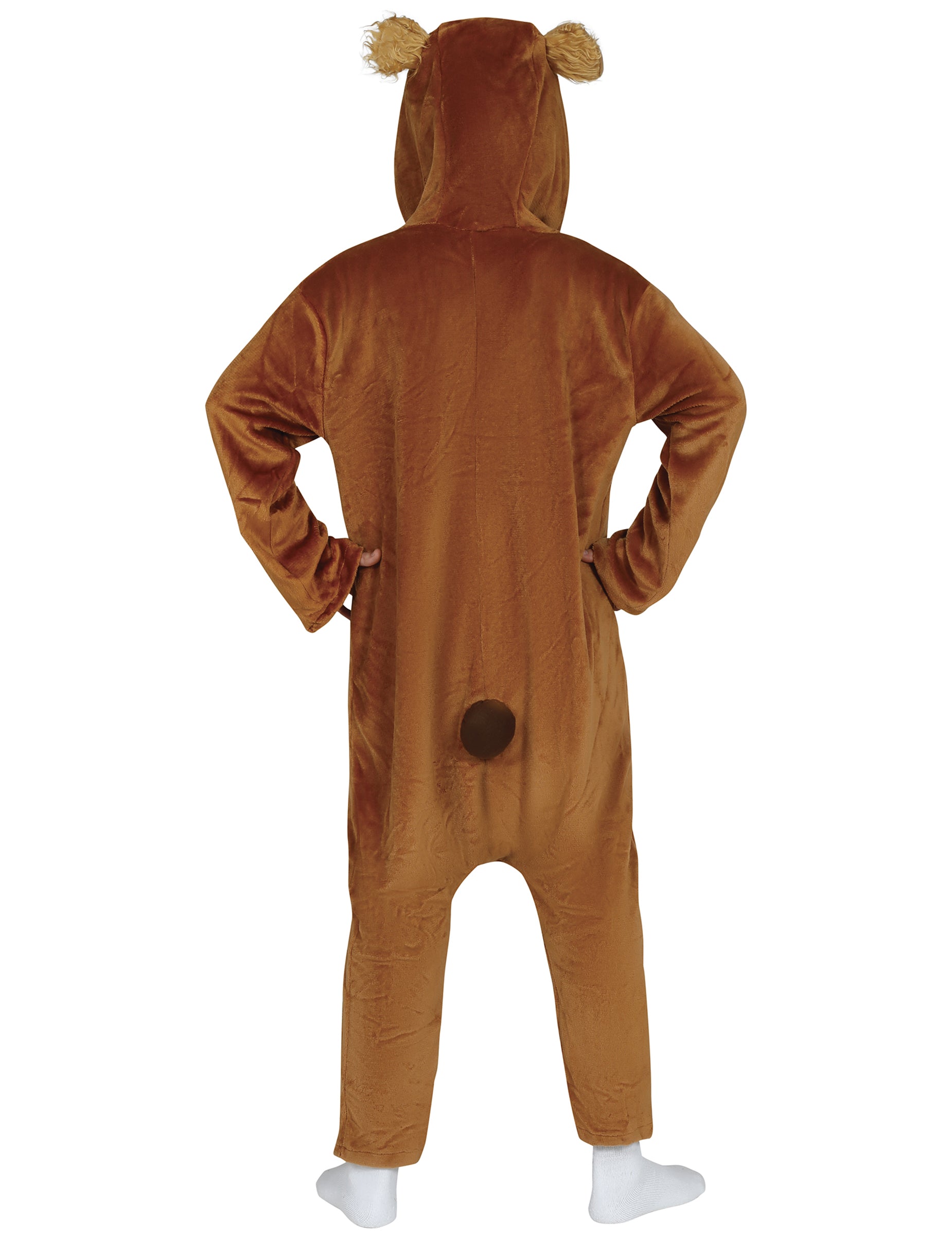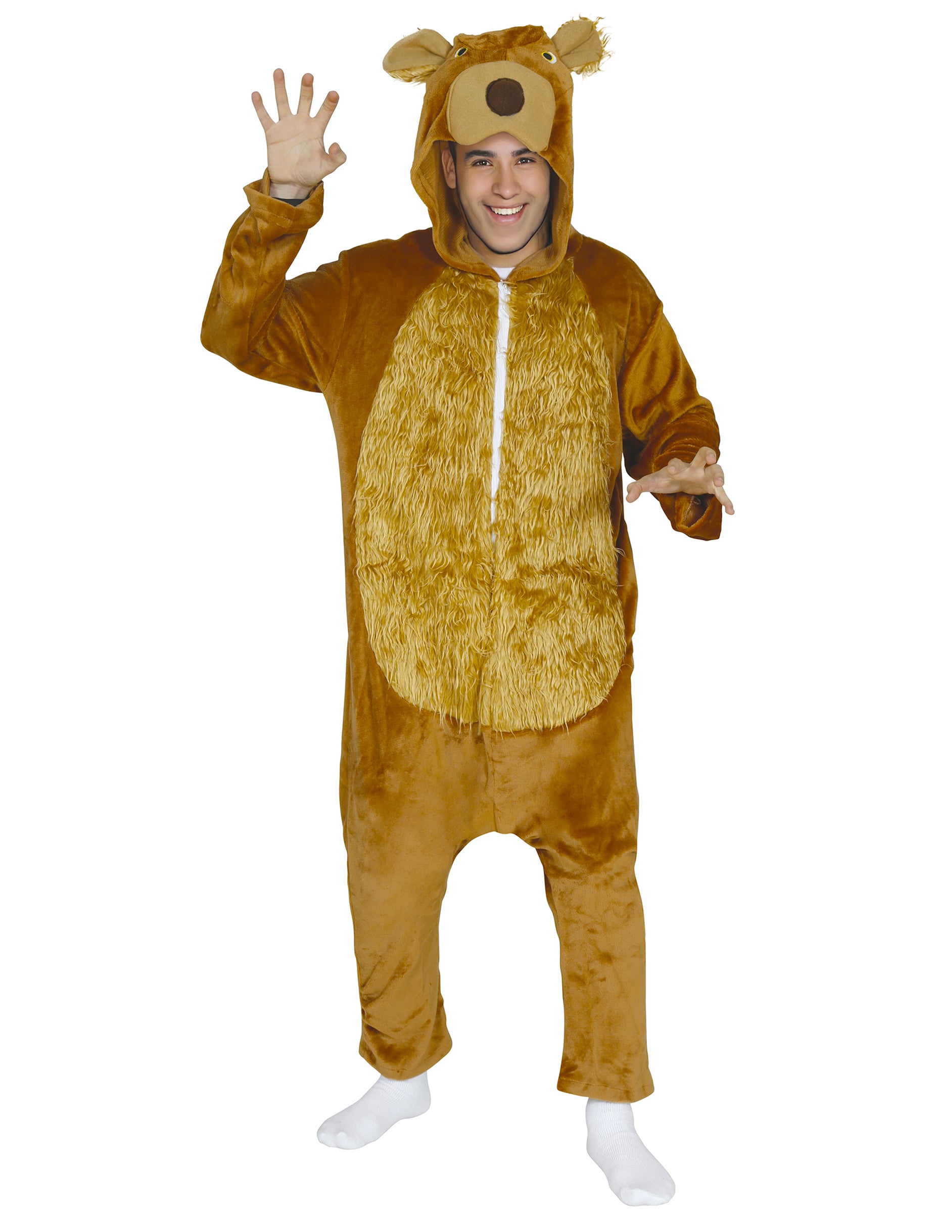 Tento kostým hnedého medveďa je určený pre dospelých. Skladá sa z kombinácie, ktorá sa uzatvára pomocou zipsu na prednej strane. Predstavuje medveď v bruchu srsť, vyrobenú z plyšovej tkaniny. Táto hnedá kombinácia má kapucňu predstavujúcu tvár medveďa s plyšovými ušami. Toto maskovanie medveďov bude ideálne pre karneval alebo na večer na tému zvierat.