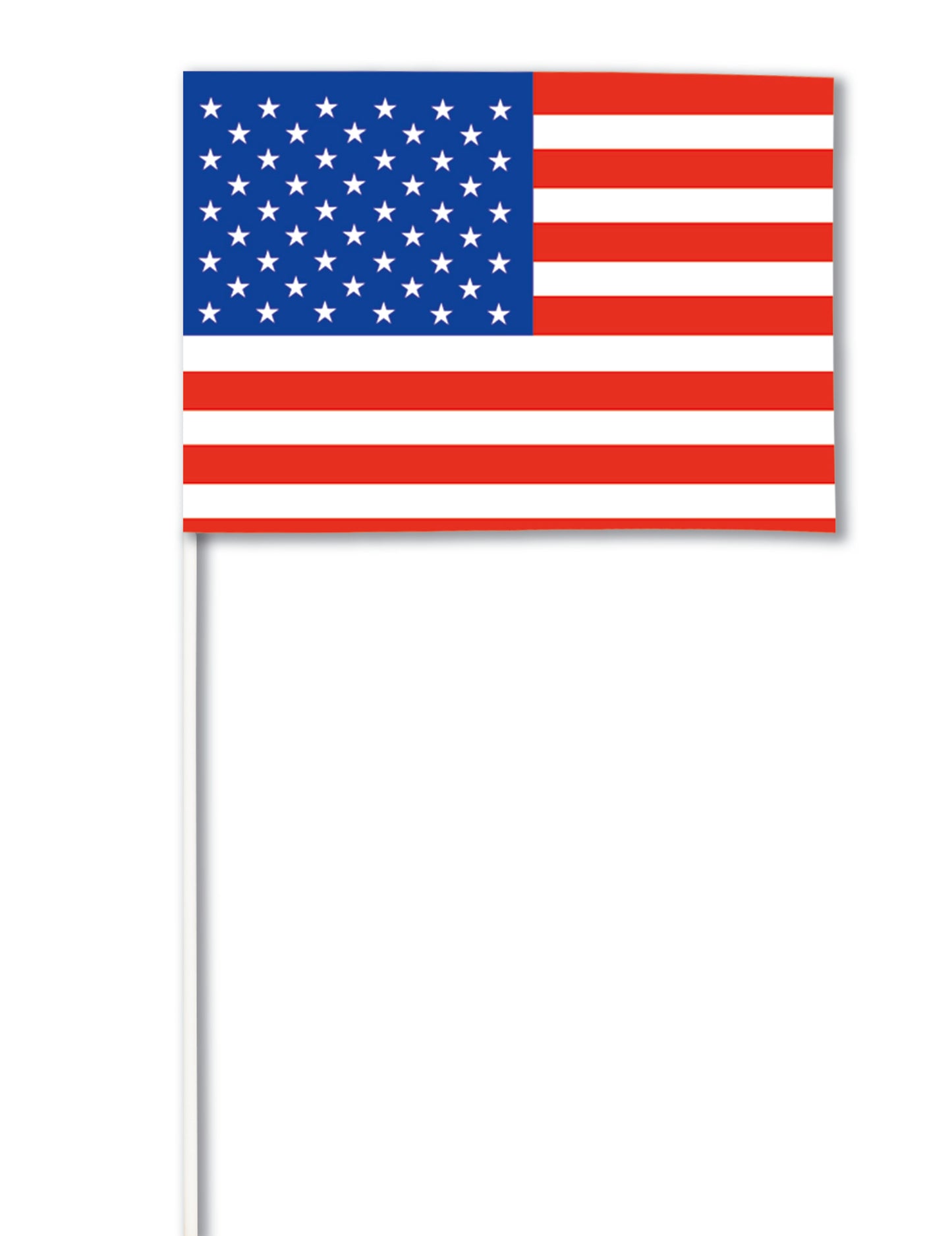 Táto papierová vlajka meria približne 14 x 21 cm. Predstavuje vlajku Spojených štátov. Táto malá vlajka je pripevnená na bielej paličke, aby ju ľahko udržala ručne. Táto vlajka bude ideálna na podporu vašej obľúbenej krajiny počas slávnostného alebo športového podujatia!