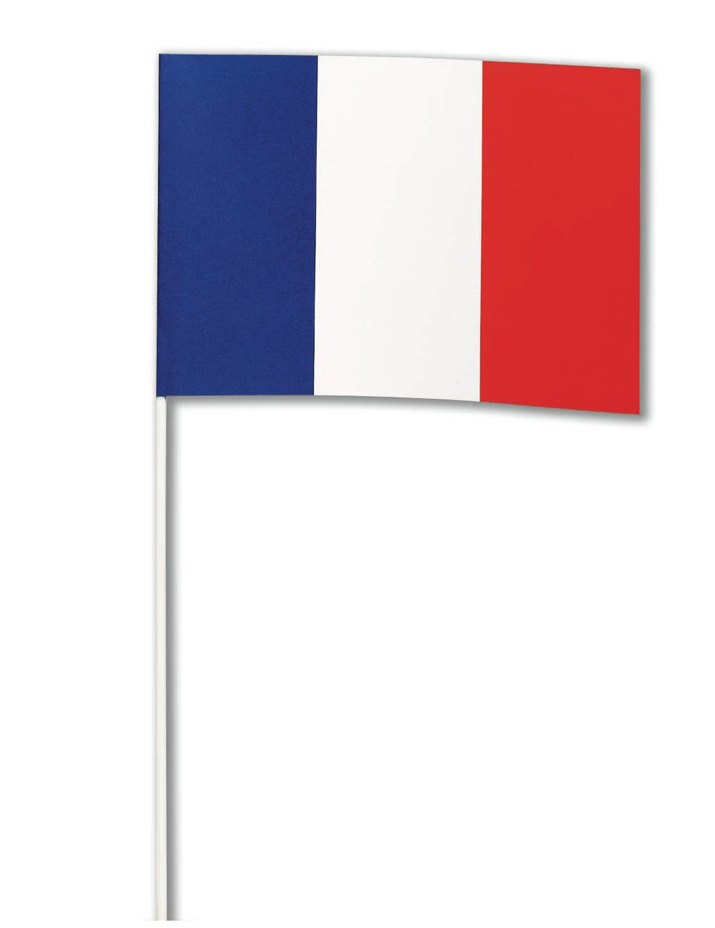 Táto francúzska zástanca papierová vlajka je trikolor modrá biela červená. Meria približne 14 x 21 cm a má malú tyčinku, ktorá vám umožní ľahko ju držať ručne. Táto vlajka bude perfektná na podporu obľúbeného francúzskeho tímu počas futbalového zápasu!
