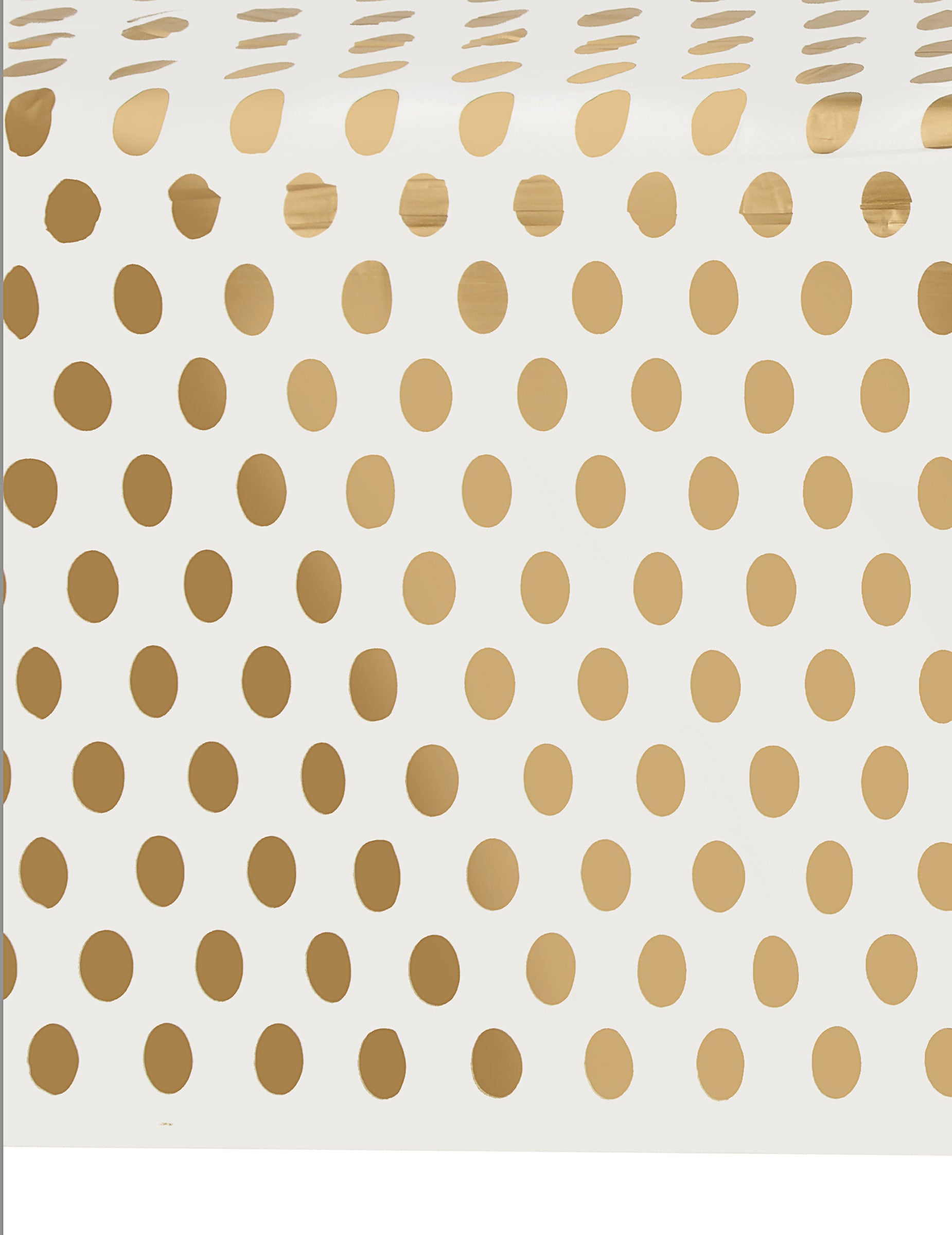 Vylepšite si prestieranie týmto plastový obrus s rozmermi 137 x 274 cm. Tento biely model je elegantne posypaný trblietavými zlatými bodkami. Je to perfektný doplnok na oslavu... narodeniny alebo akúkoľvek inú slávnostnú udalosť zlatá téma šik a iskrivé.
