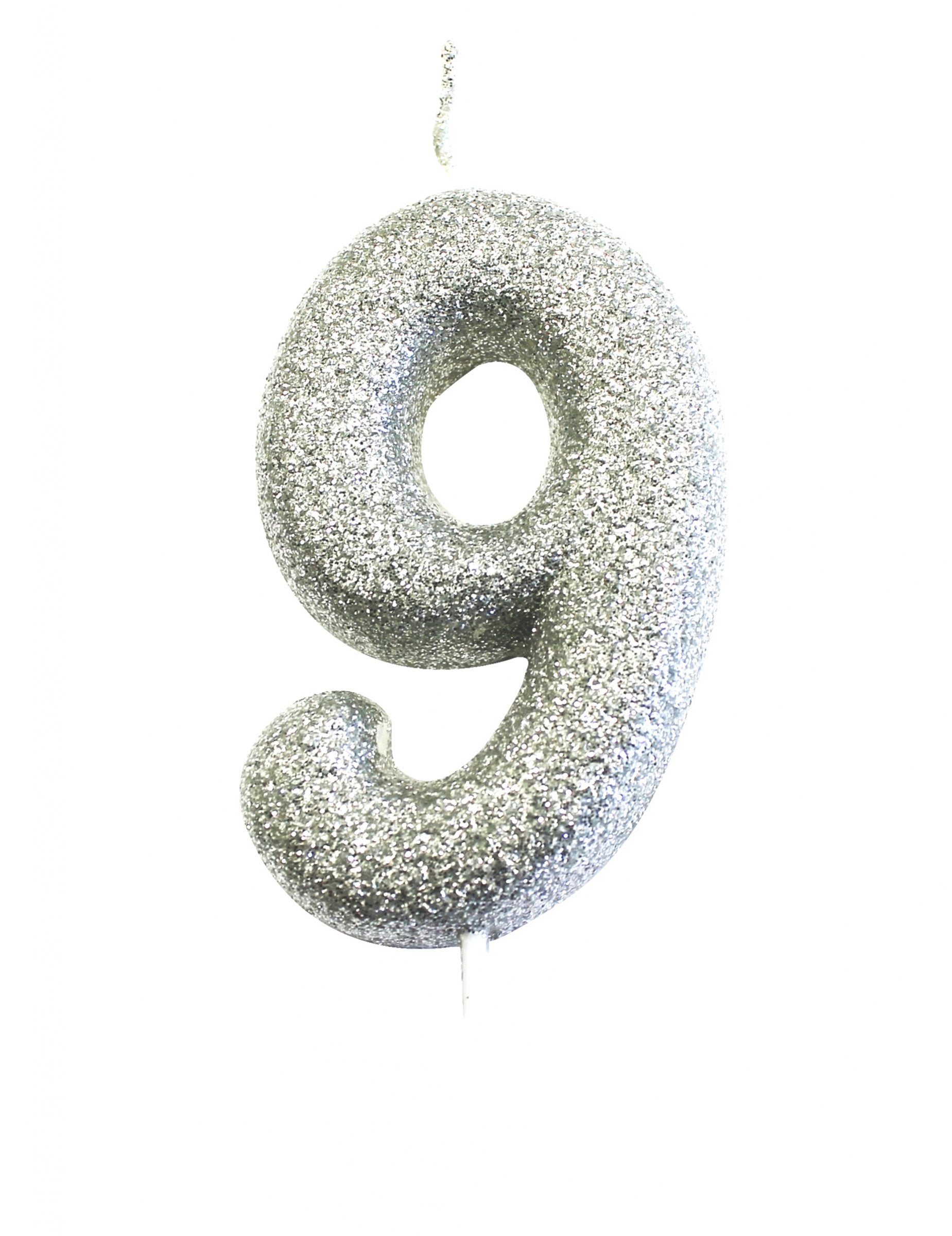 Strieborná trblietavá sviečka na paličke s číslom 9 7 cm na narodeninovú tortu