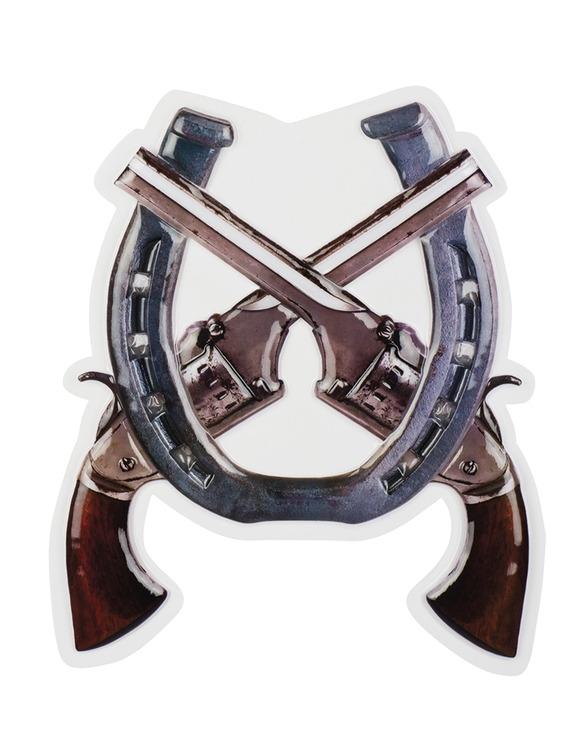 Táto šarža sa skladá z rozdielnej dekorácie steny. Táto dekorácia PVC meria približne 47 x 40 cm. Predstavuje 2 kovbojské pištole prekrížené s podkovou, že táto dekorácia bude perfektná na dokončenie dekorácie vašej izby na západnej téme!